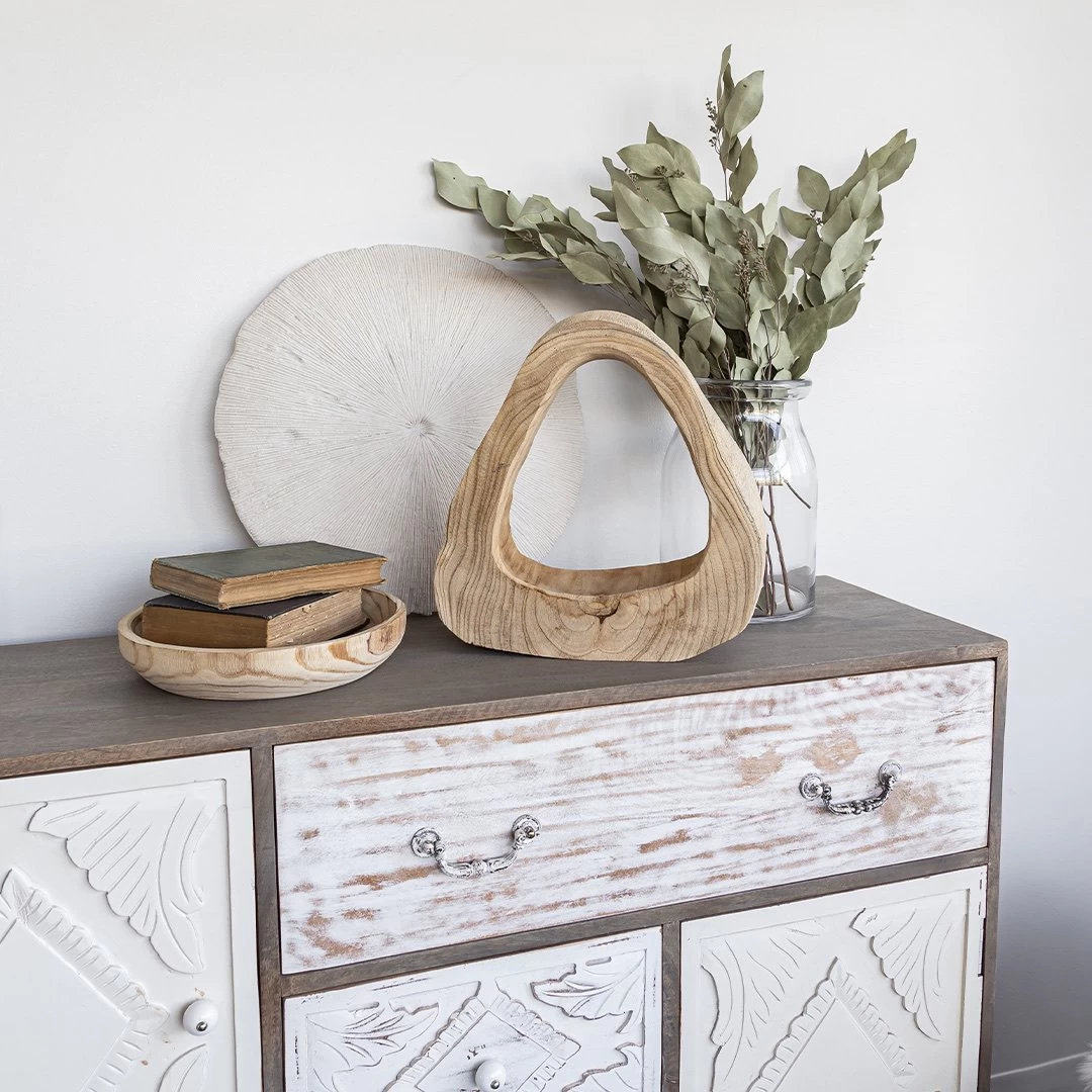 Organic elements in the home bring nature indoors. Our Nova Tri Sculpture, made from natural Paulownia wood, has the most gorgeous organic shape. Just like you, no two sculptures are alike. We love this sculpture displayed on its own or as the ideal spot for an air plant, your keys or precious trinkets, rocks, and gems.