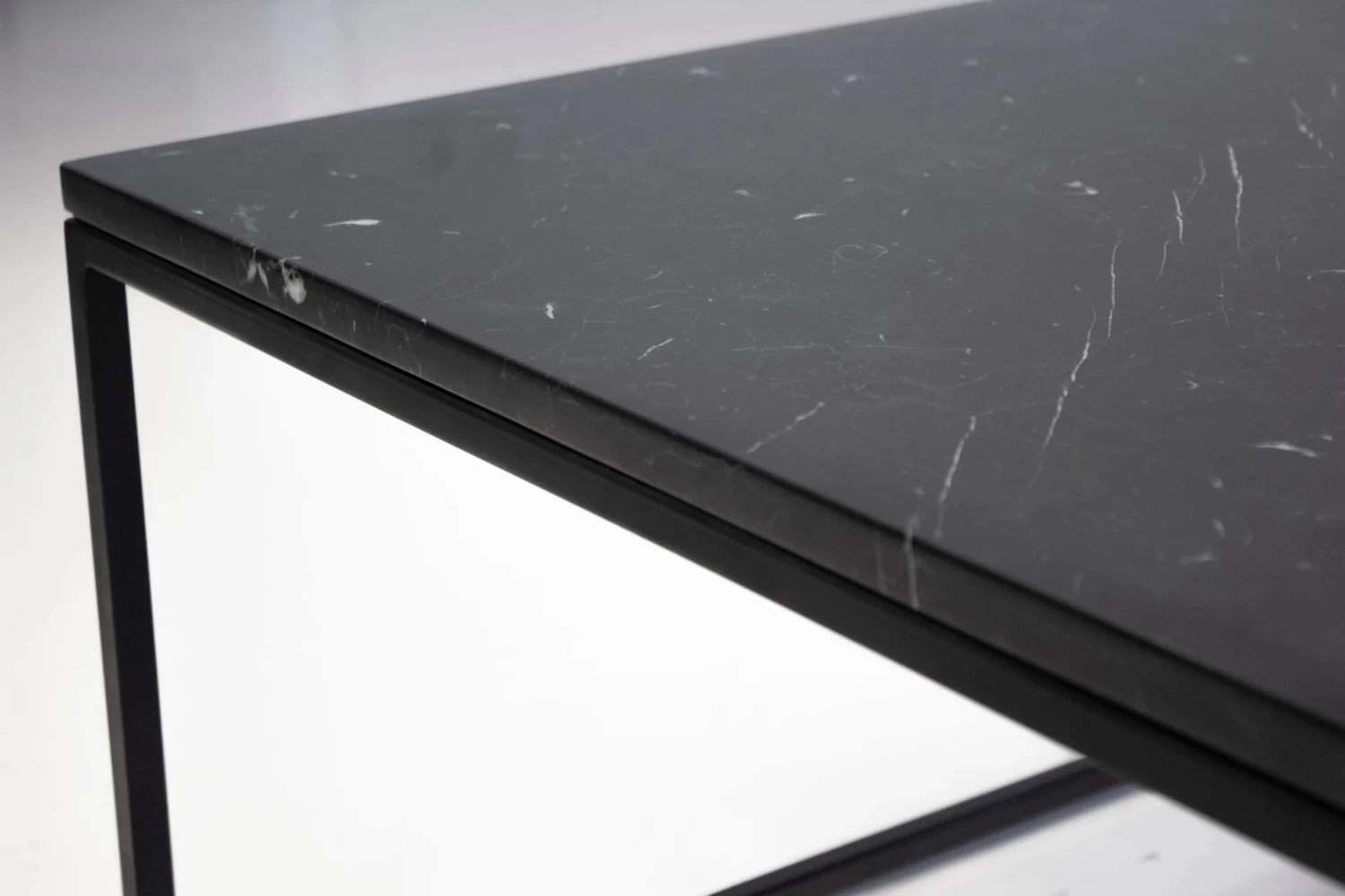 Enhance your home with the luxurious Onix Square Coffee Table. Crafted with Nero Marquina marble from Spain, it’s sealed with a matte lacquer finish for effortless upkeep. Plus, its black hue lends a sophisticated yet contemporary air to any space. A must-have for the discerning style-savvy designer.