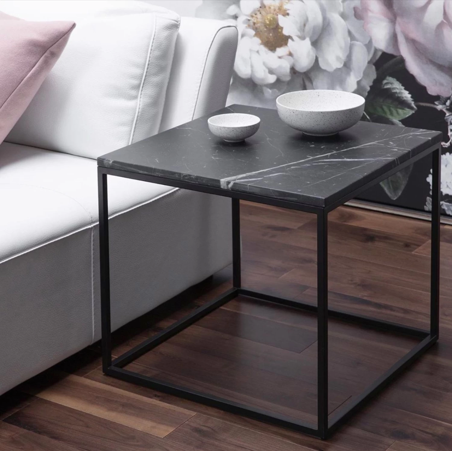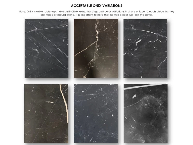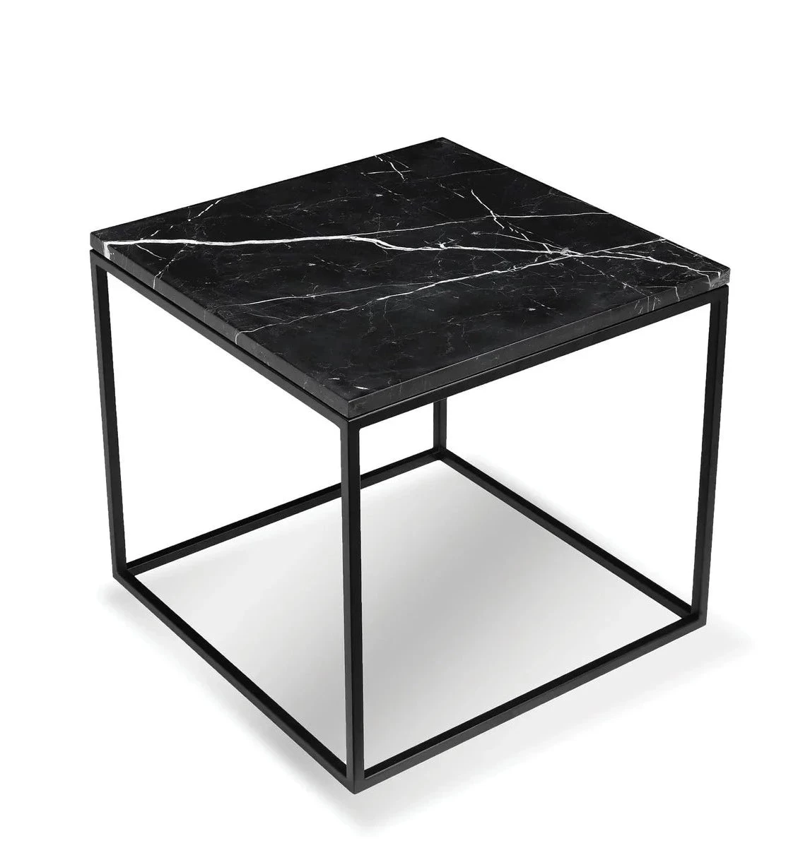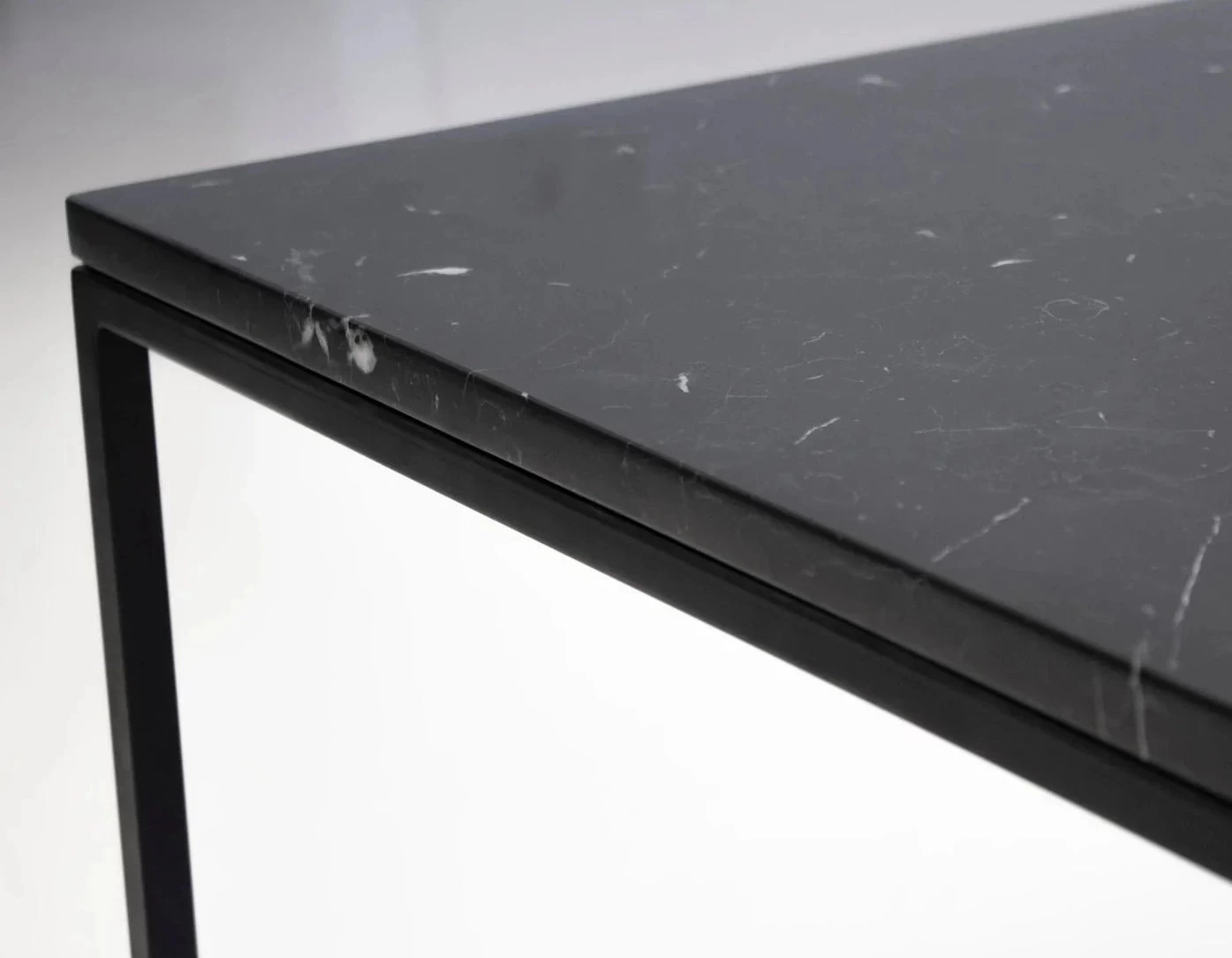 The ONIX coffee table adds sophisticated charm to any décor with its ultrastylish all-black PC steel frame and Spanish Marquina black marble tabletop featuring distinctive vein, markings, and color variations exclusive to each piece, as each is crafted from organic stone.