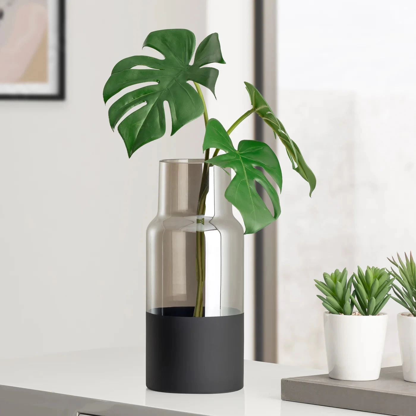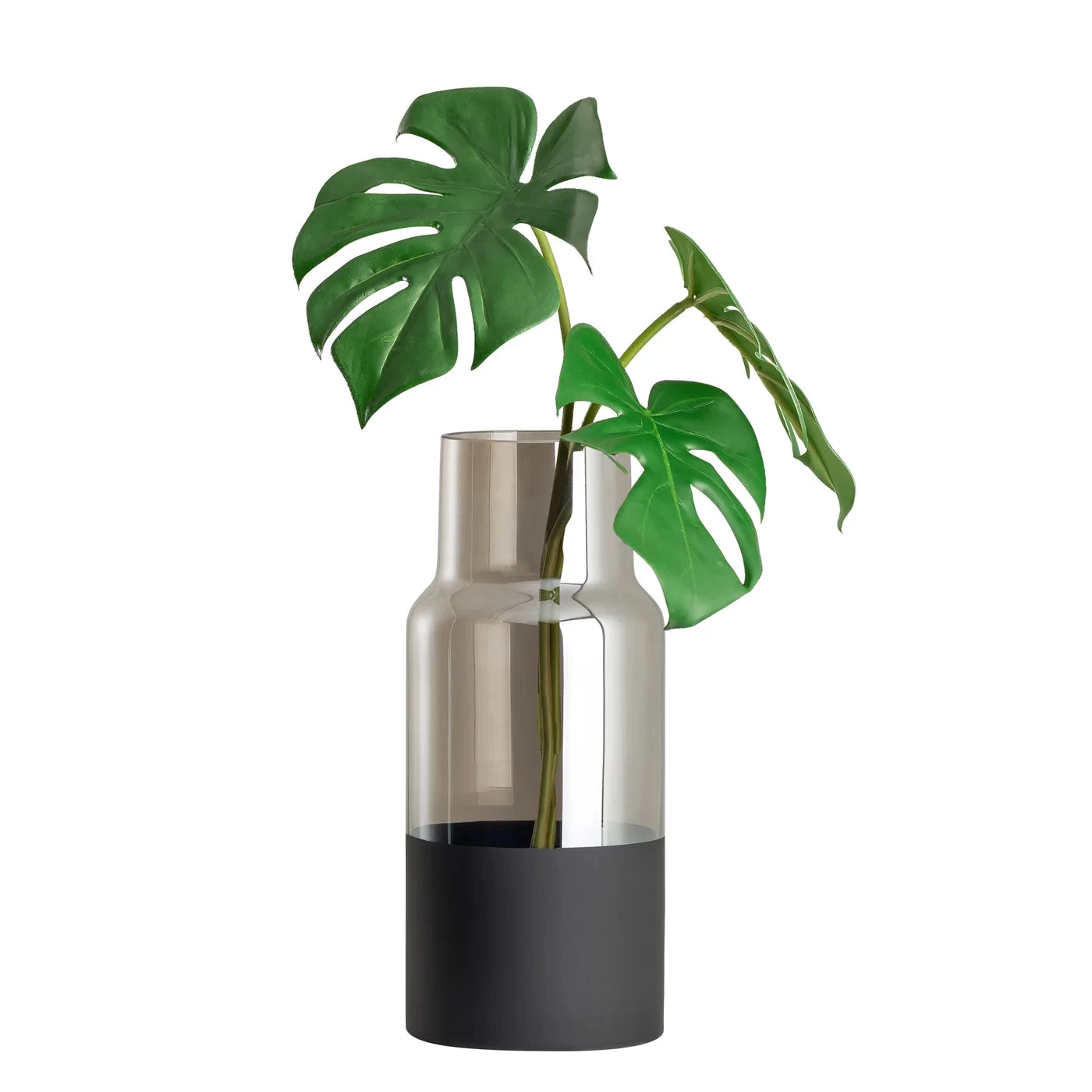 Sophisticated yet modern, the Onyx Base Smoke Glass 10h” Cylinder Vase adds a touch of elegance to any living space with its mix of texture and color. Crafted from high-quality smoke glass, its matte black base exudes a luxurious charm. A perfect centerpiece for any occasion.