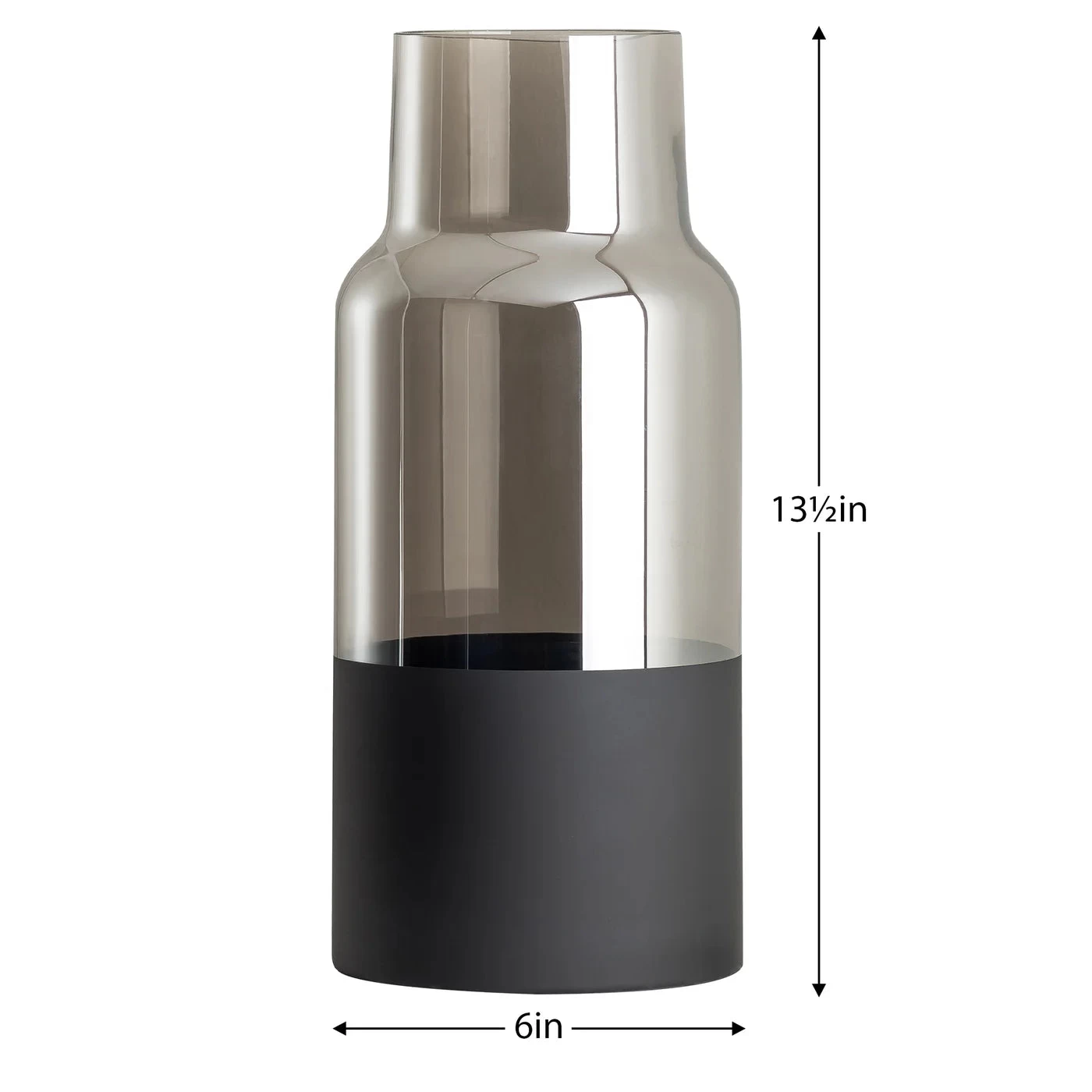 This Onyx Base Smoke Glass 13.5h” Cylinder Vase is a sophisticated addition to any display. Its smoke glass is delicately highlighted by a timeless matte black base, creating a subtle yet eye-catching juxtaposition of colors that elevates any atmosphere.