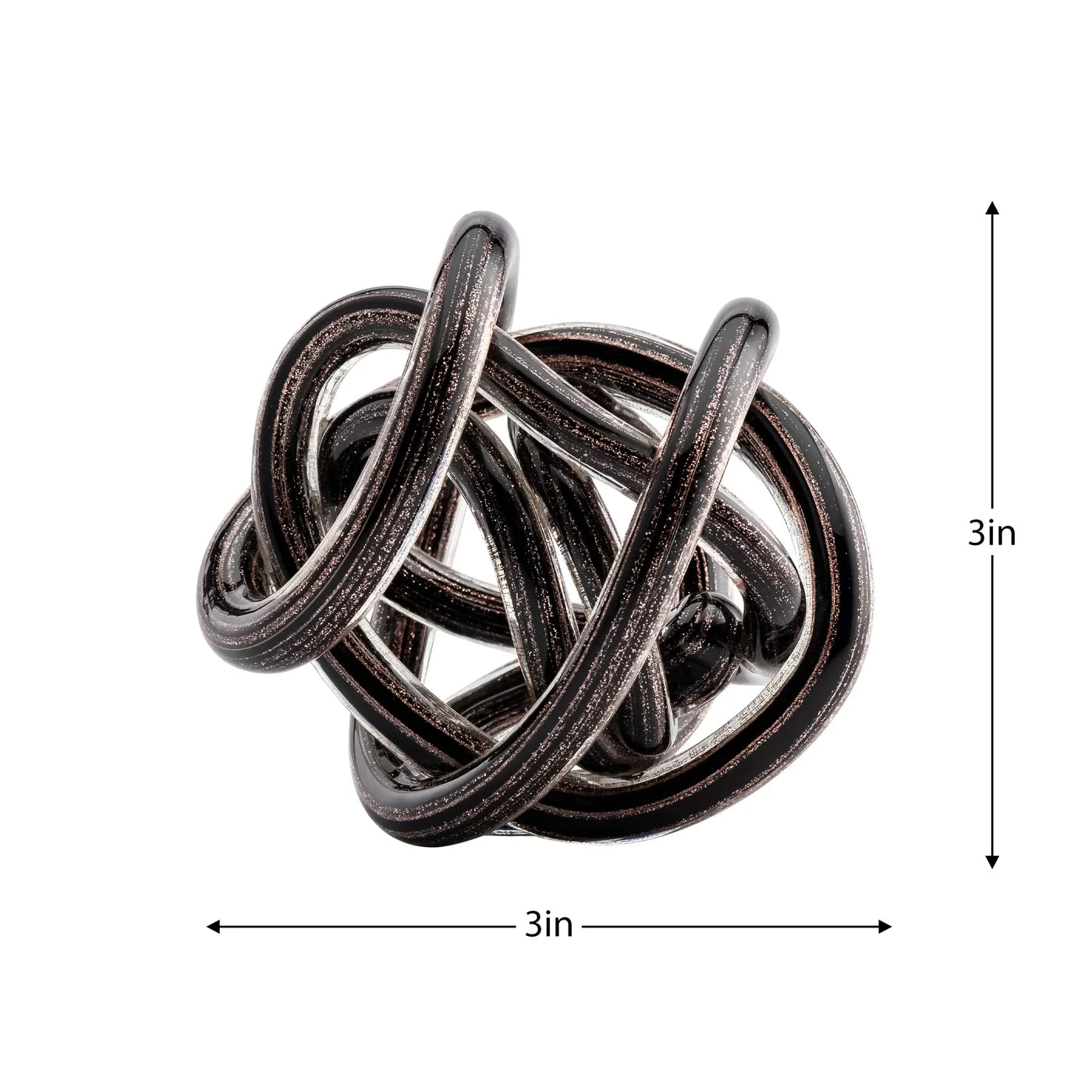 This captivating free-form glass ornament is handcrafted to create a sophisticated and unique sculpture, perfect for bringing a dose of artisanal charm to any interior. Its remarkable golden-black color scheme creates a stunning contrast, making it a perfect conversation piece as a bowl filler or display item. Enjoy modern elegance with Orbit Glass Knot.