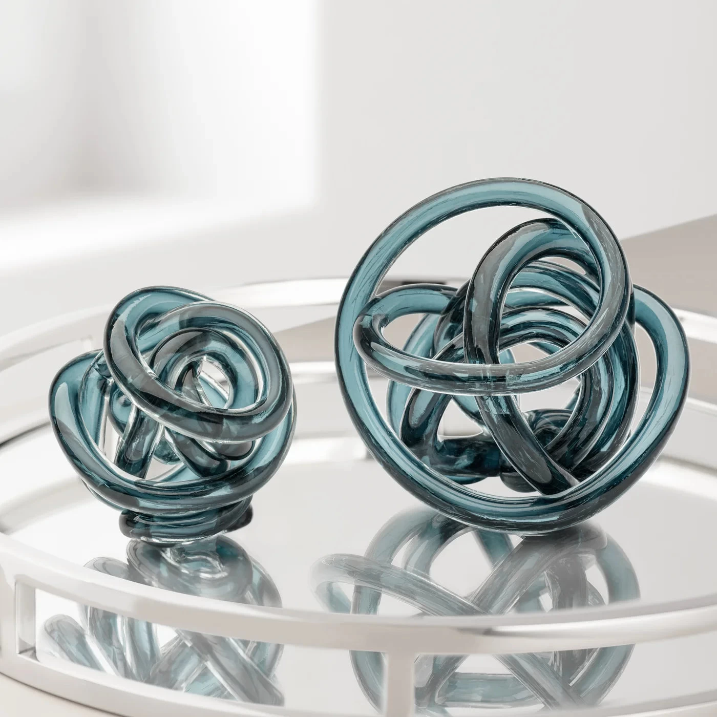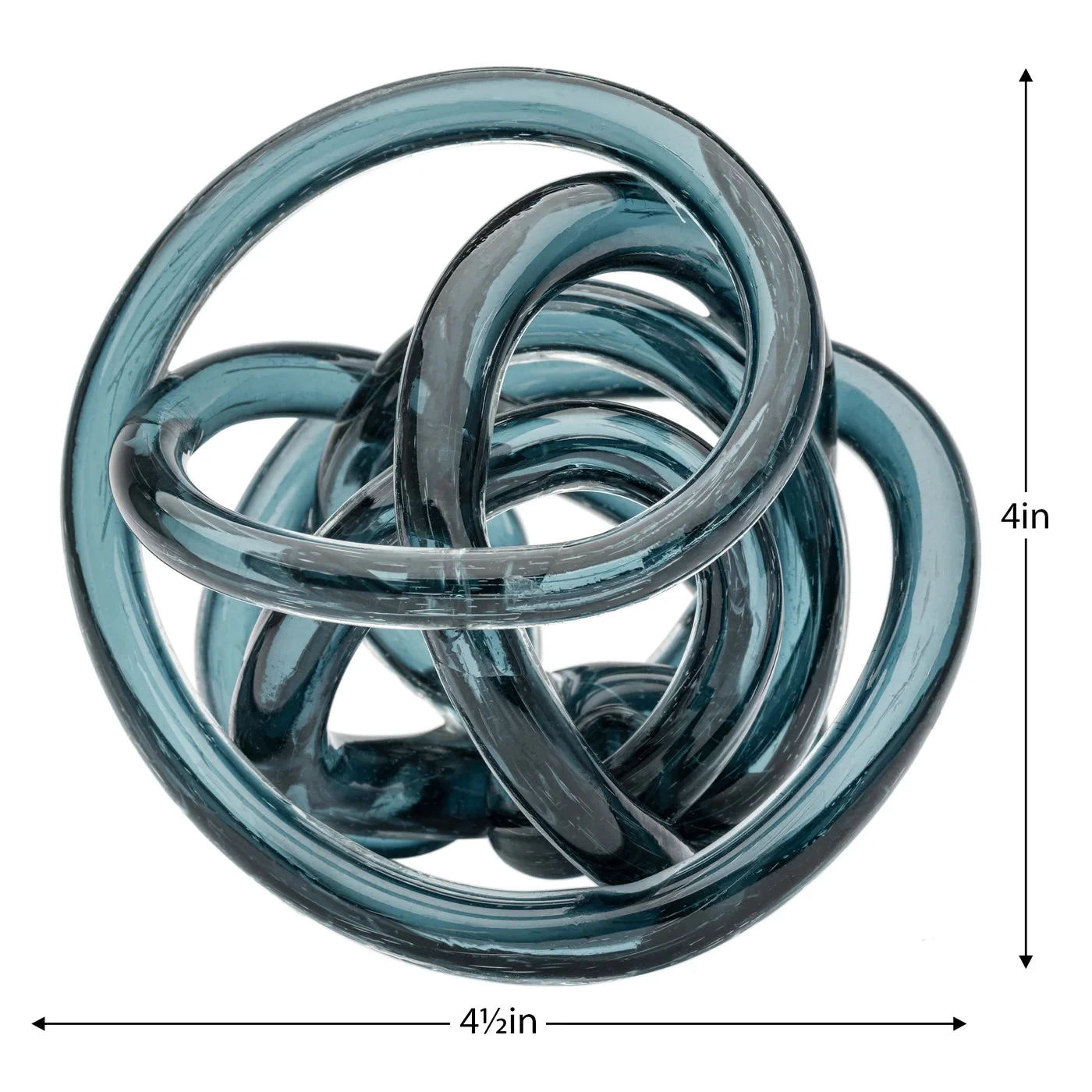 Unlock a world of sophisticated beauty with the Orbit Glass Knot 4.5” Diameter Decor Ball. Crafted from free-form glass to create a unique and eye-catching sculpture, this elegant decor piece is a true statement piece for any room or table. Its stylish slate blue coloring makes a statement with a subtle hue, elevating your home decor to a whole new level.