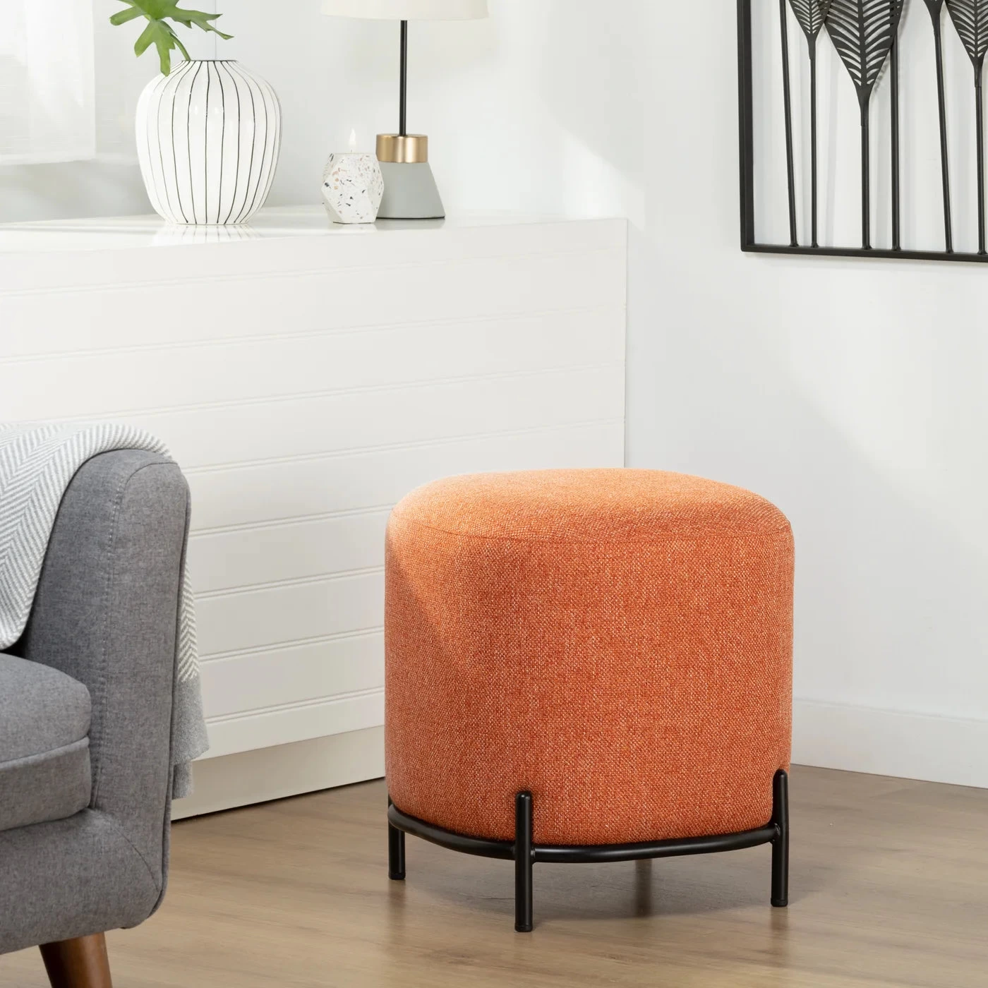 A contemporary upholstered stool that gives any space an updated look.
