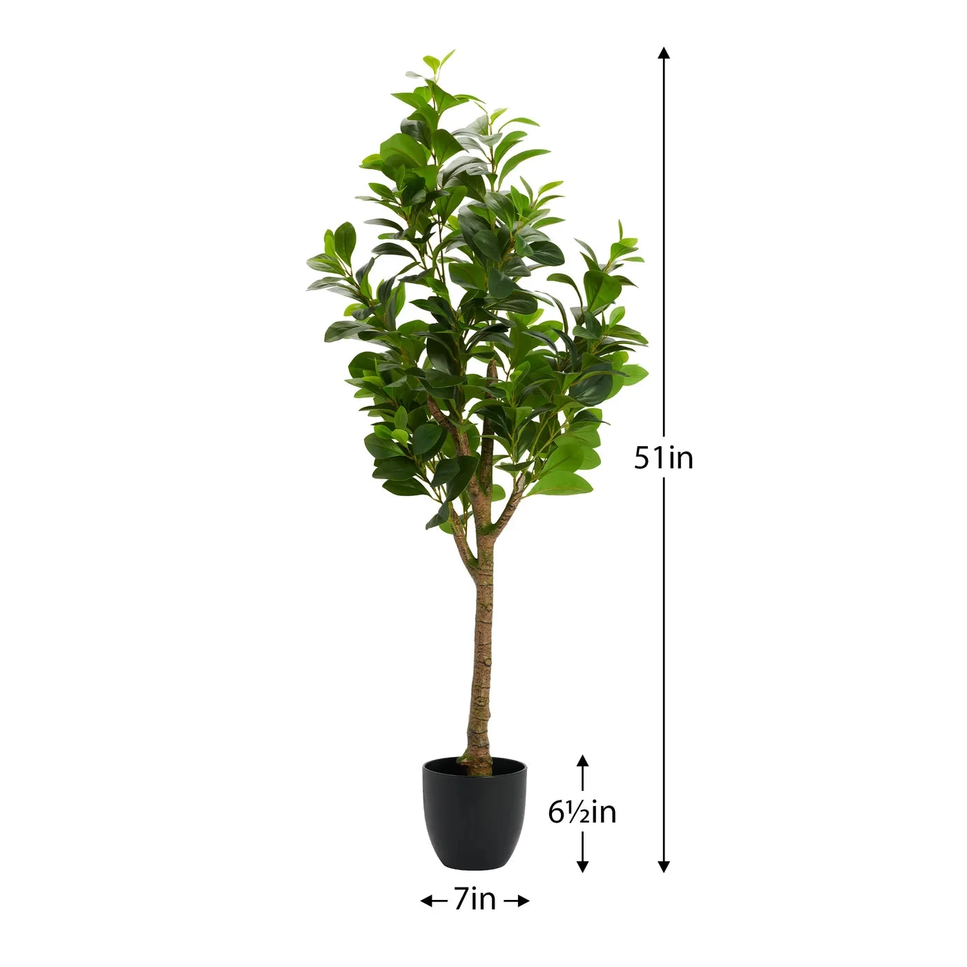 Dimensions:Â Pot. 7d x 6.5h”. Total height 51h”