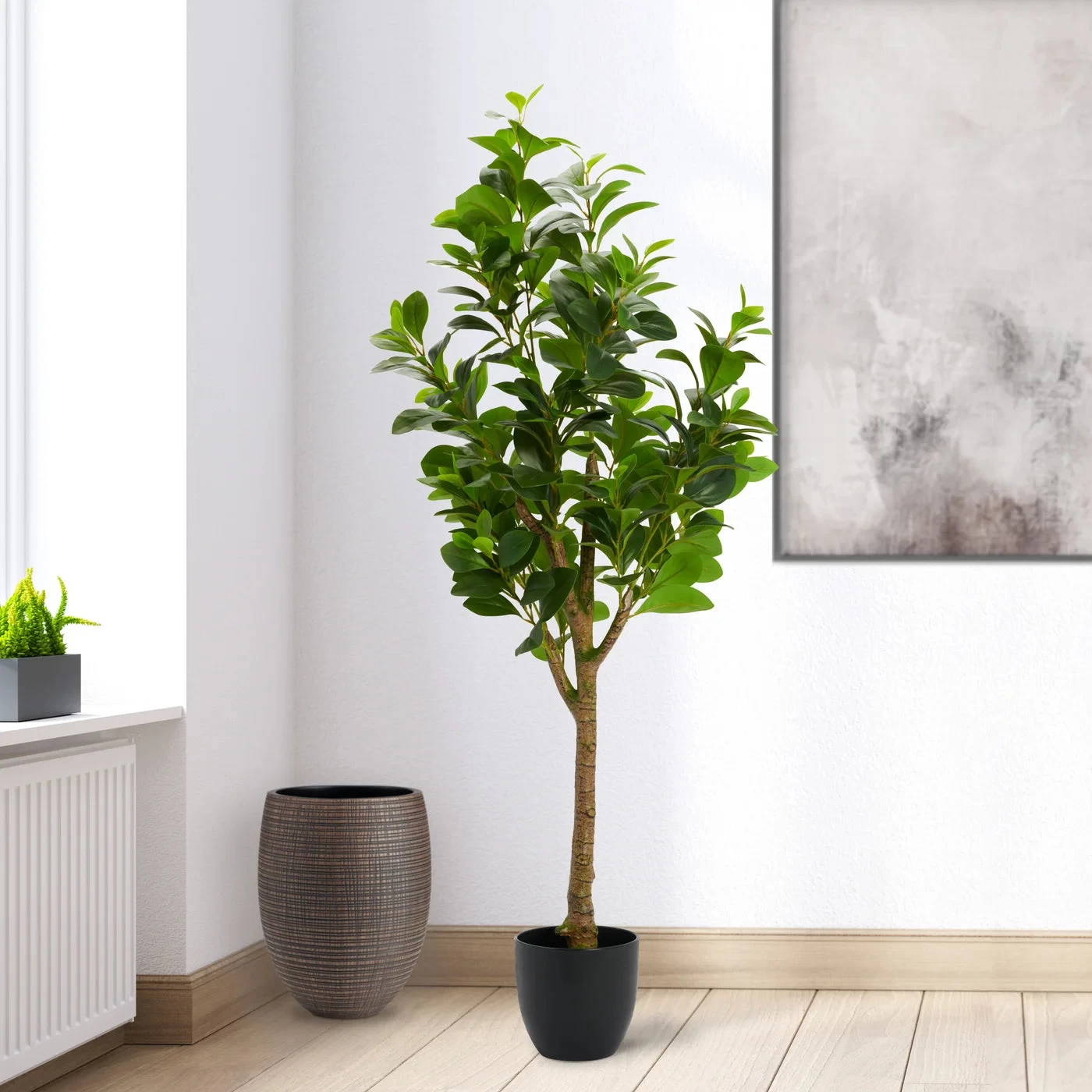 Greet visitors with luxury style with this 51″ tall faux Peperomia Tree Plant. The realistic-looking tree adds a warm, welcoming touch to any living room or entry way. Its dense foliage sits atop a single stem, and is easily placed into any planter of your choice to add an instant air of sophistication.