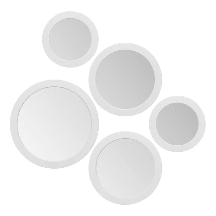 Arrange this set of five modern mirrors on a wall to create a unique display.
