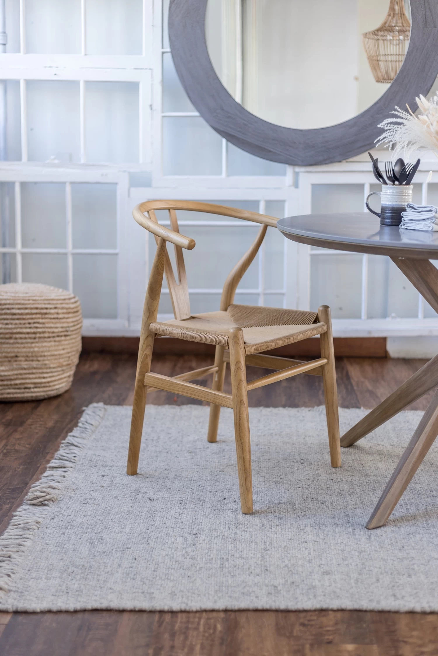 Inspired by the Hans J Wegner Wishbone Chair from 1950, our Frida Dining Chair is a new take on classic mid-mod design. From the fluid lines to the sturdy woven seat and airy design, Frida looks gorgeous around the dining table, in the office or at a cafe.