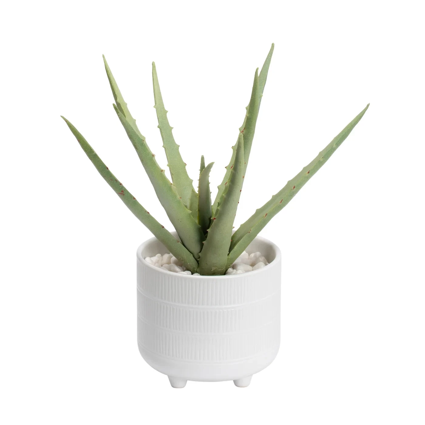 Bring nature’s beauty indoors with this contemporary and elegant Riviera Ceramic Potted Faux 11h” Aloe Succulent Plant. The lifelike faux aloe succulent is perfectly set in its matte white ceramic pot and accompanied by white pebbles, creating a stylish modern design that will make any space more inviting. A must-have for any entryway or living room.