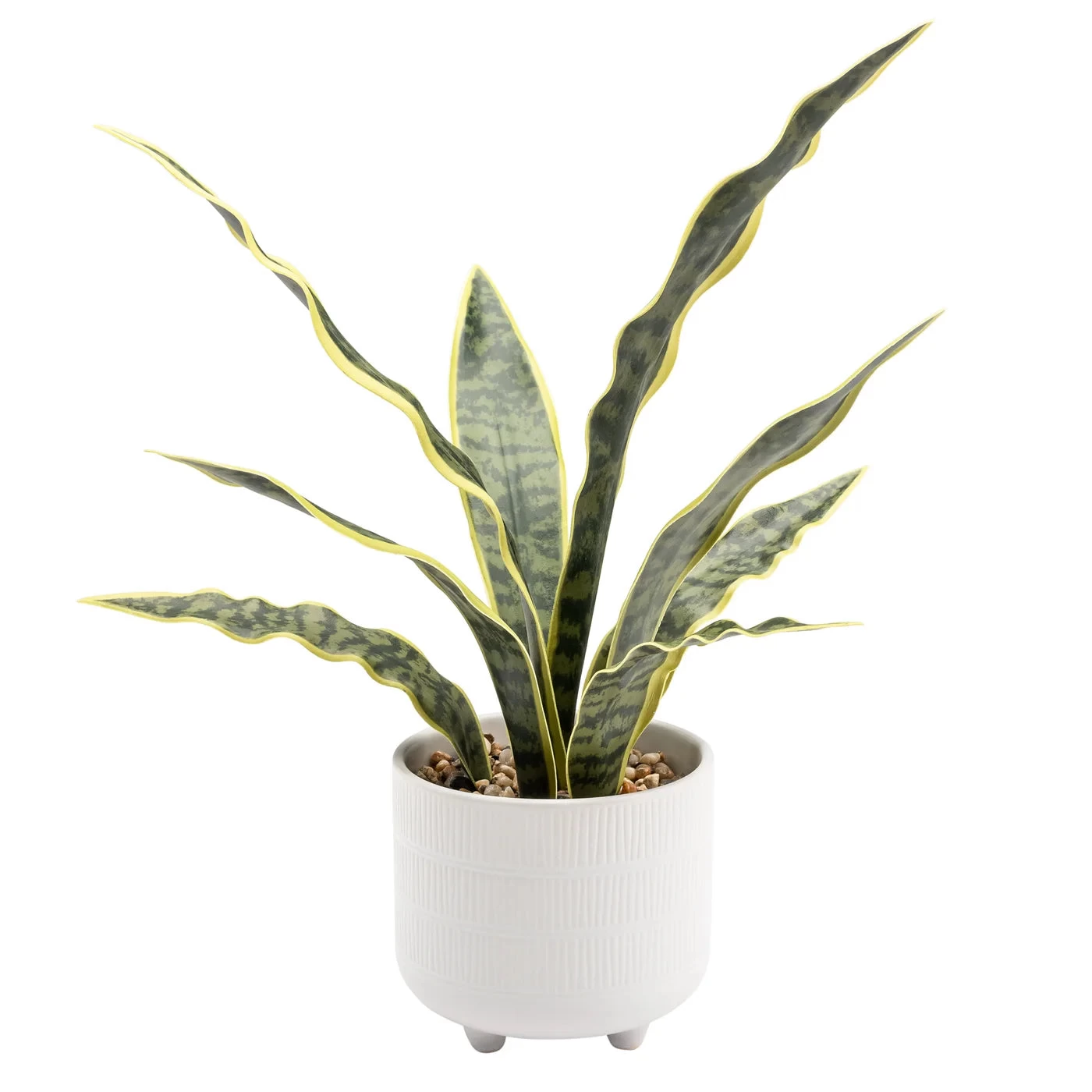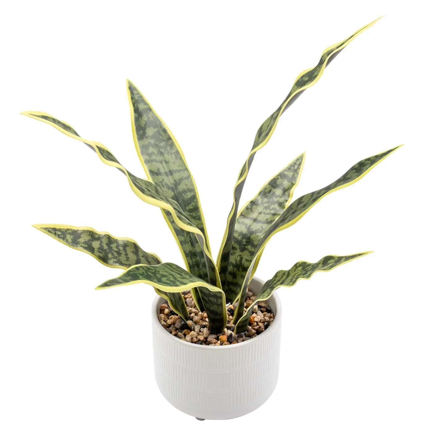 Bring the beauty of nature indoors with the Riviera Ceramic Potted Faux 16h” Snake Plant. Crafted from lifelike materials and set in a matte white ceramic pot, this modern plant is the perfect way to create a welcoming ambiance in any entryway or living room. Adorned with white pebbles for a polished look, this faux plant will bring a touch of luxury to your décor.