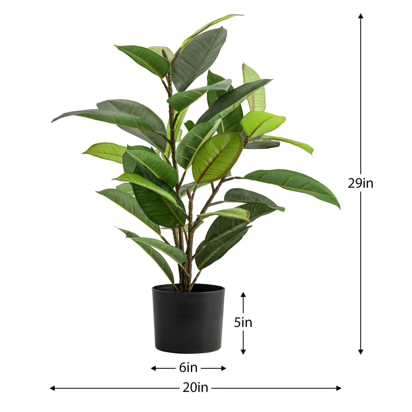 Bring chic greenery into any living space with this stately Rubber Tree. Crafted from faux material to guarantee long-lasting use and quality style, this 29h” potted plant is the ideal addition to any home or office. Perfect to pair with a planter of your choice, or to be admired on its own.