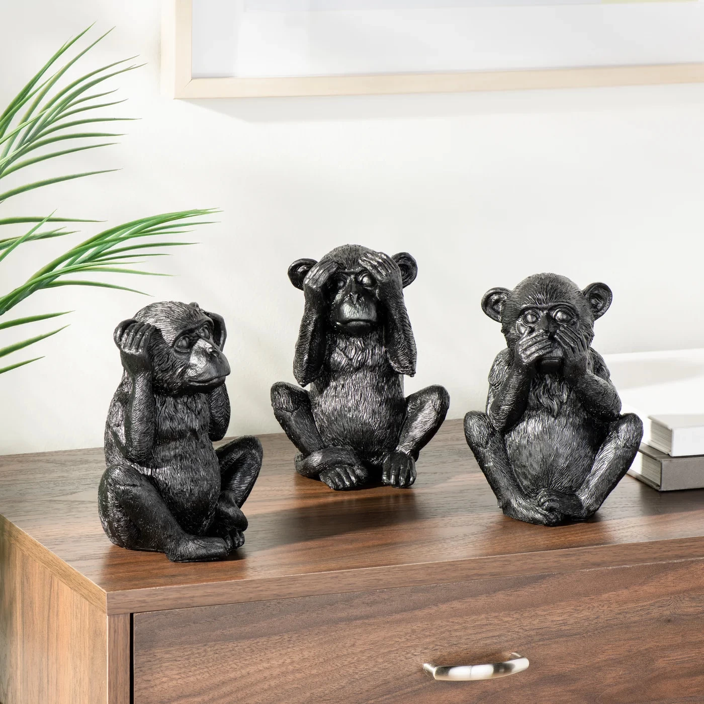Upgrade your home design with enigmatic charm with this 3-Piece BlackResin Monkey Decor Figure Set. Crafted from stunning black resin, this tropical twist on a classic design will add a touch of sophisticated whimsy to any room, captivating the eye and inviting conversation.