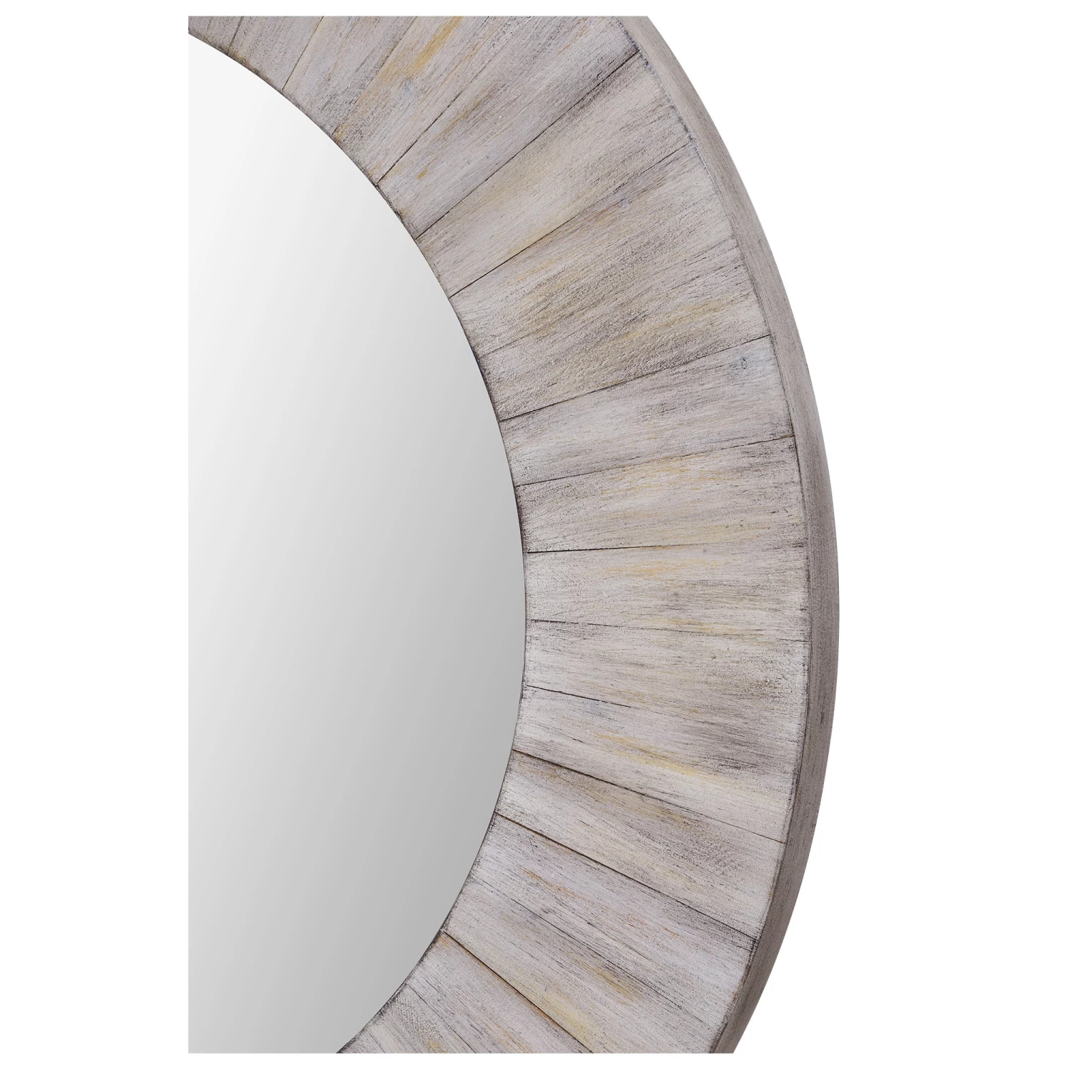 The Sheldon Wall Mirror is a contemporary piece of wall decor, featuring a firwood frame with a whitewash finish.Â