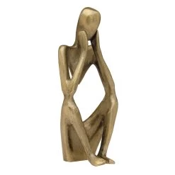 Pensive Figure 9h” Antique Brass Aluminum Decor Sculpture – 1 Knee Up