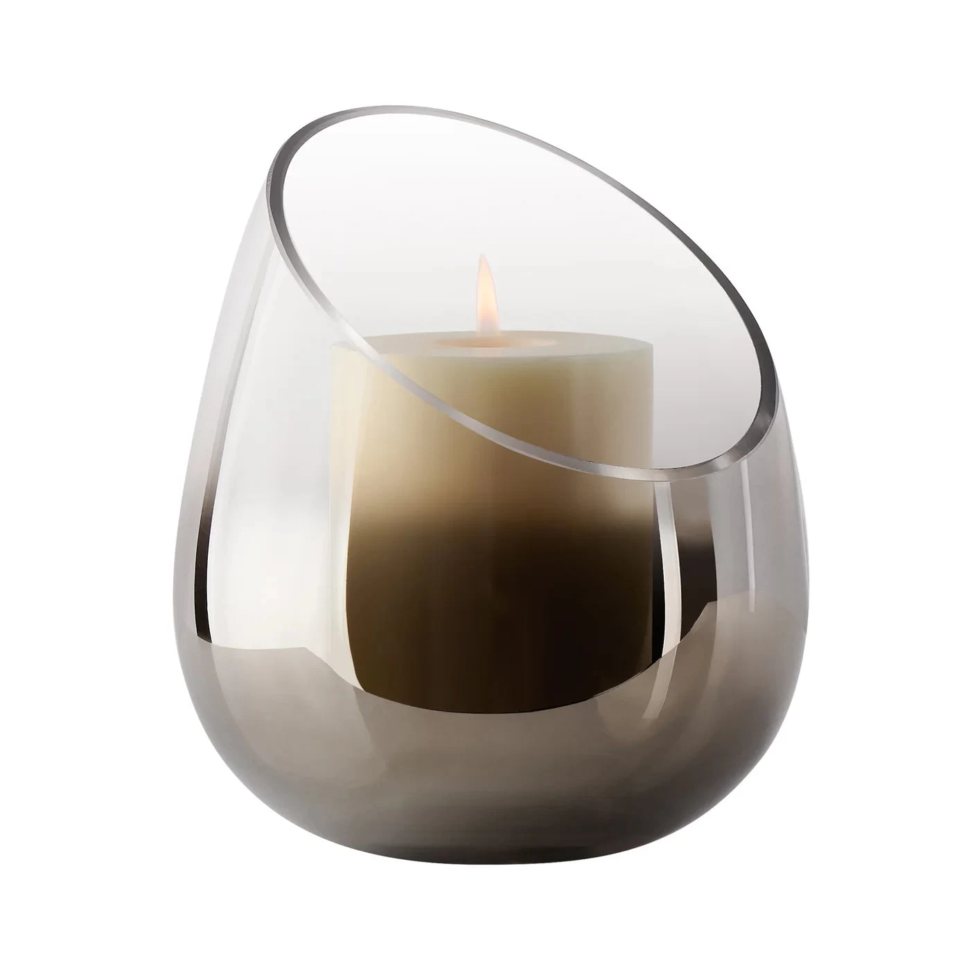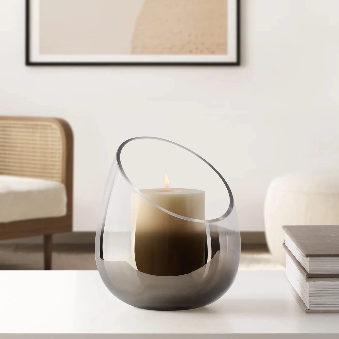 This beautiful Smoke Mirror 6.5h” Angled Cone Hurricane Vase is the perfect accessory to make a dramatic statement in any setting. Its luxurious smoke mirror finish adds an elegant touch to floral and candle arrangements, or it can be displayed as a stunning stand-alone piece. With its sophisticated style, this exquisite vase is ideal for any luxury space.