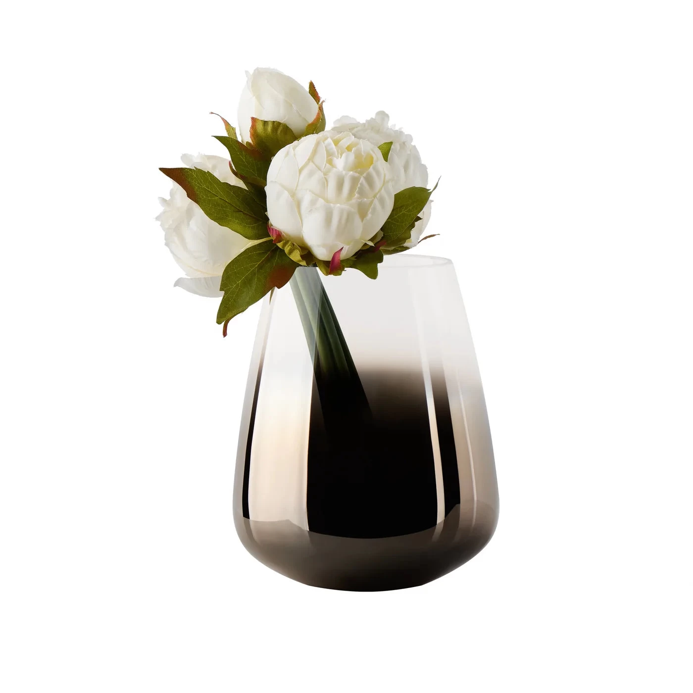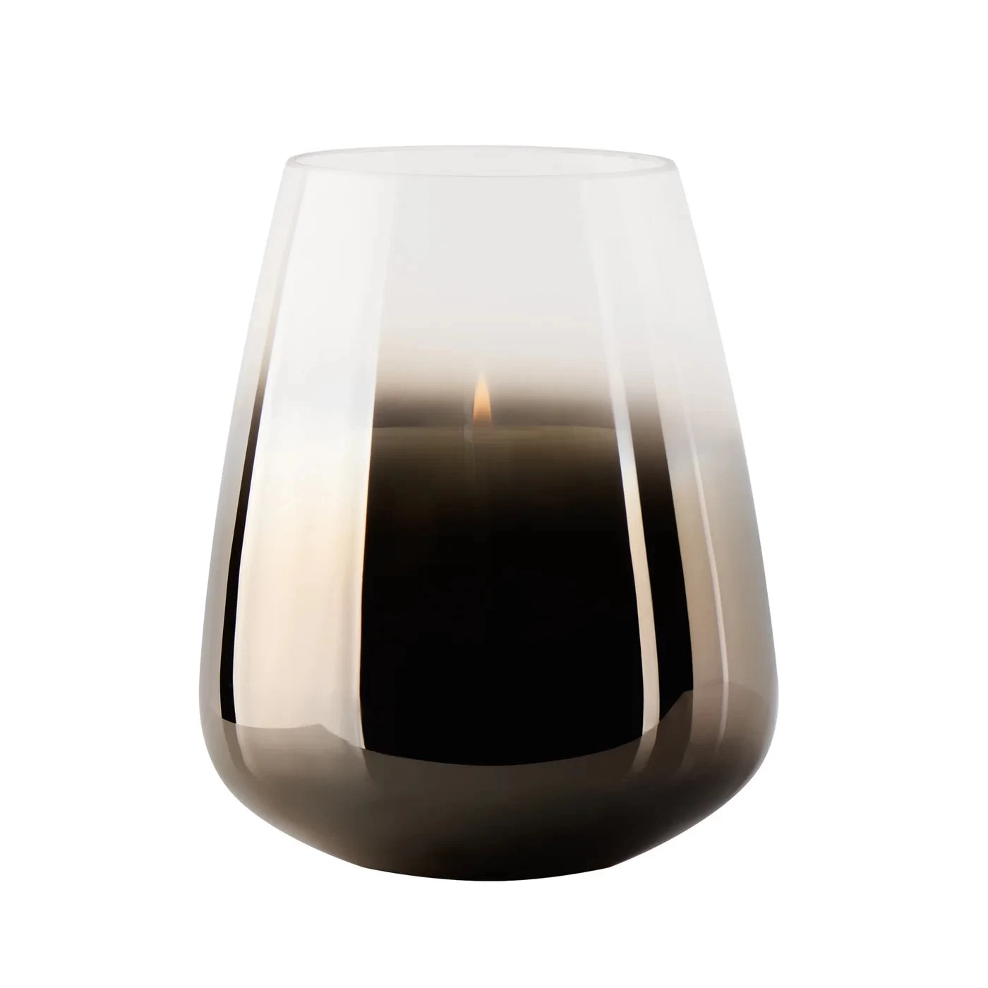 This Smoke Mirror 7.25h” Cone Hurricane Vase brings an air of sophistication and allure wherever it goes. Crafted from a unique glass cone shape and glazed with a sleek smoke mirror finish, it can be used to create a dramatic floral display or stand alone as a statement decorative piece. An elegant and tasteful addition to any room.