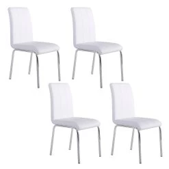 Chromed metal chair frame ensures sturdy support on this contemporary chair. Curved faux leather back and seat provide comfort for casual dining.