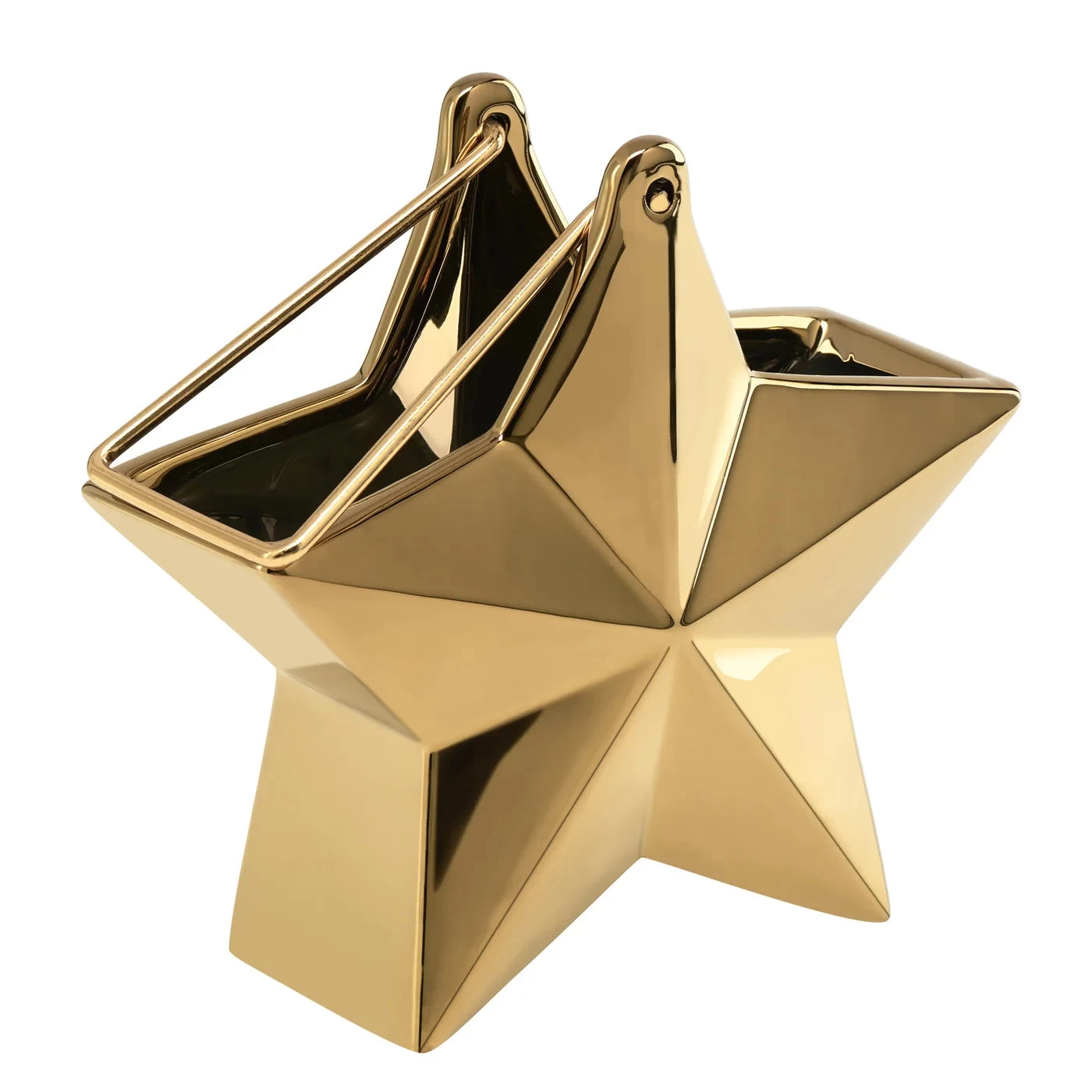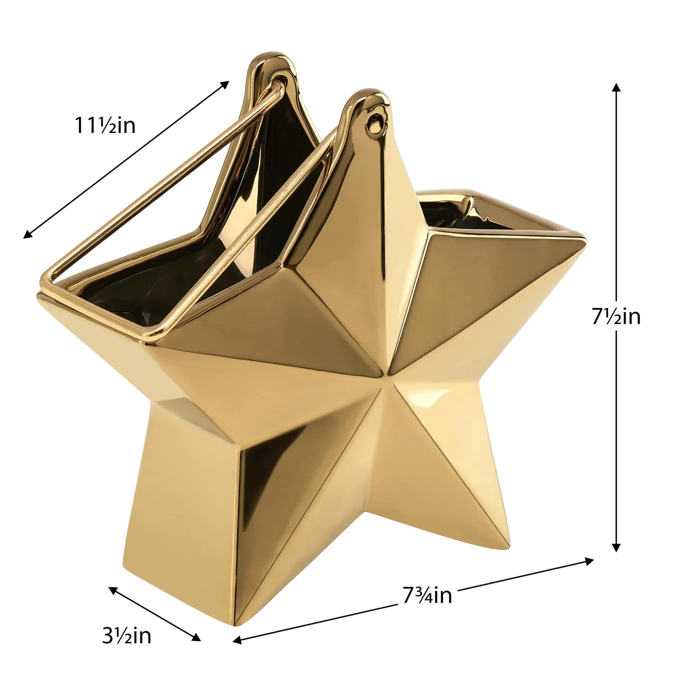 Elevate the ambiance of any room with this exquisitely crafted star-shaped ceramic vase. With its stunning gold color and 7.5h” size, it’s the perfect addition to any home decor. Use it to create a unique display either hanging or sitting on a table or shelf, or use it to create an impressive centerpiece, perfect for special events or holiday decorations. Fresh or faux floral arrangements will look breathtaking when showcased in this exquisite vase.