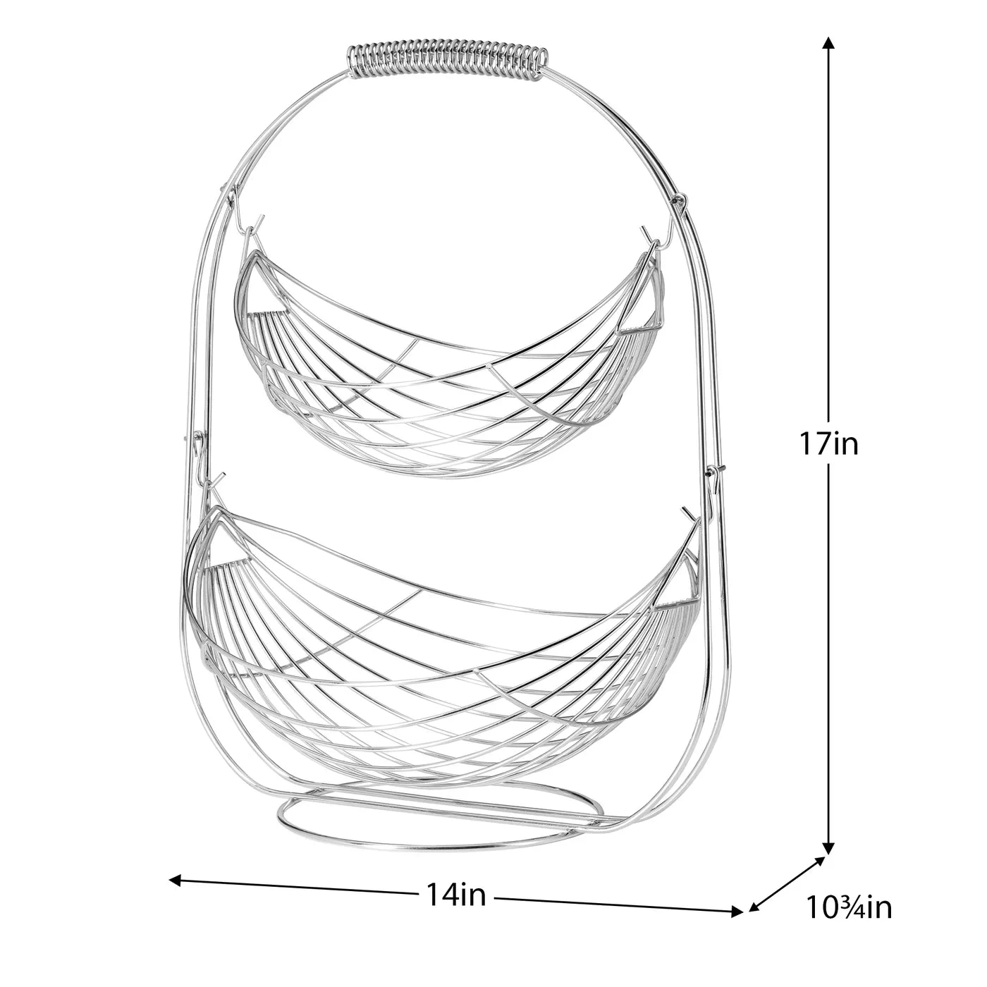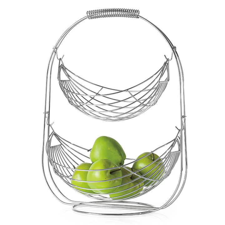 AÂ counter top essential! This chrome plated 2 level fruit bowl is the perfect counter top accessory. The space saving design features 2 wire bowls suspended from the arched stand making it practical and easy to move from counter to table.