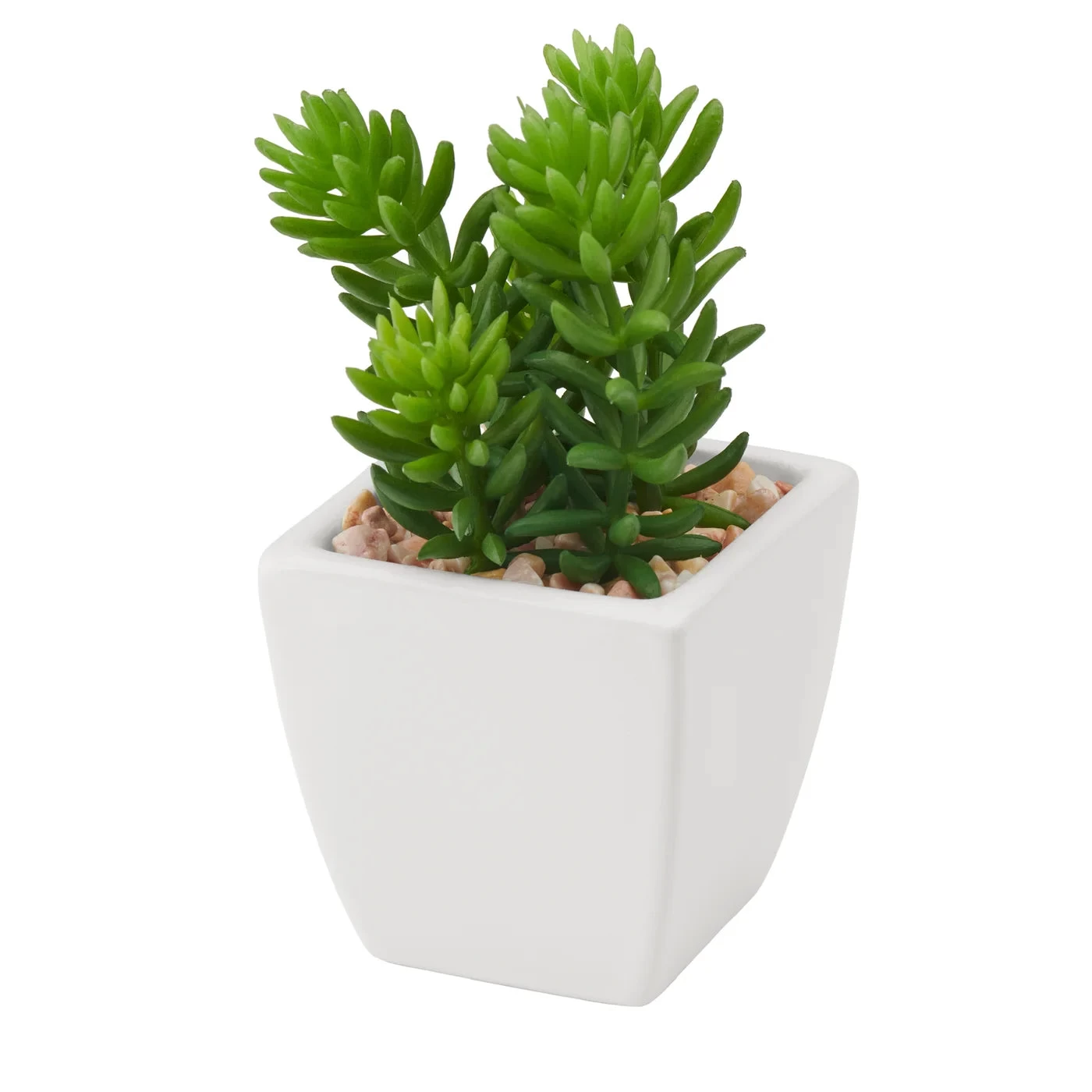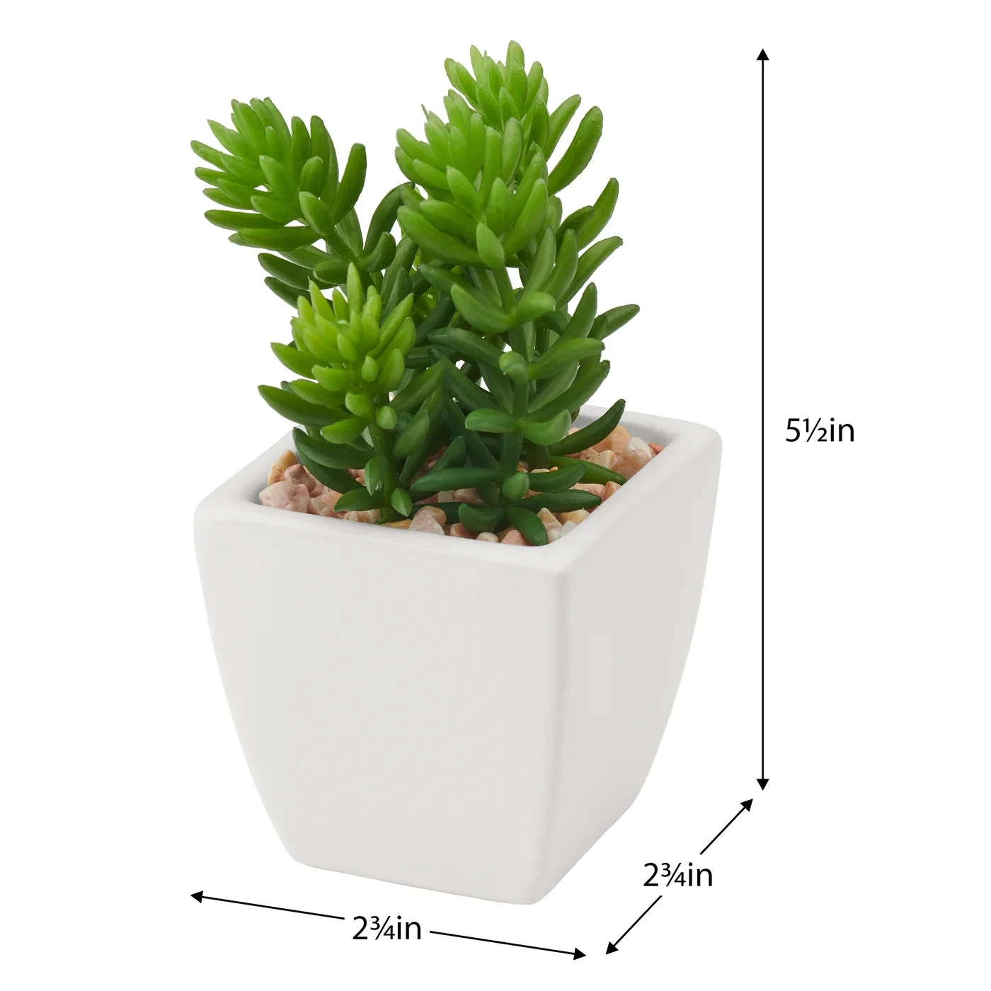 Introduce a modern touch and a hint of nature into any home or office with this elegant Tapered Mini Faux Succulent Potted Plant – Jellybean. Its contemporary tapered square ceramic pot and realistic jellybean succulent plant will add a lush presence to any shelf, desk or table, while demanding little in the way of maintenance. Perfect for adding a hint of serenity to any space.