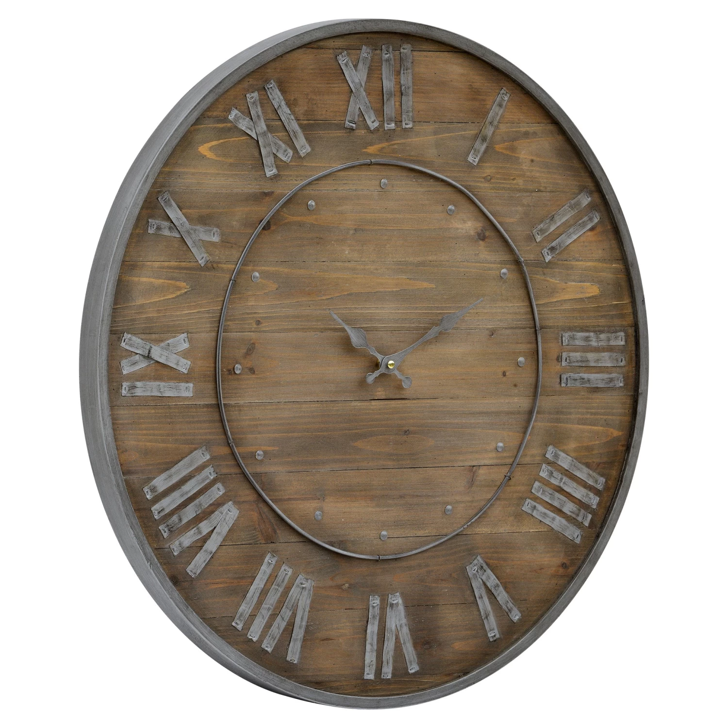 The Teatime Wall Clock is composed of natural wood with an antique grey finish.Â