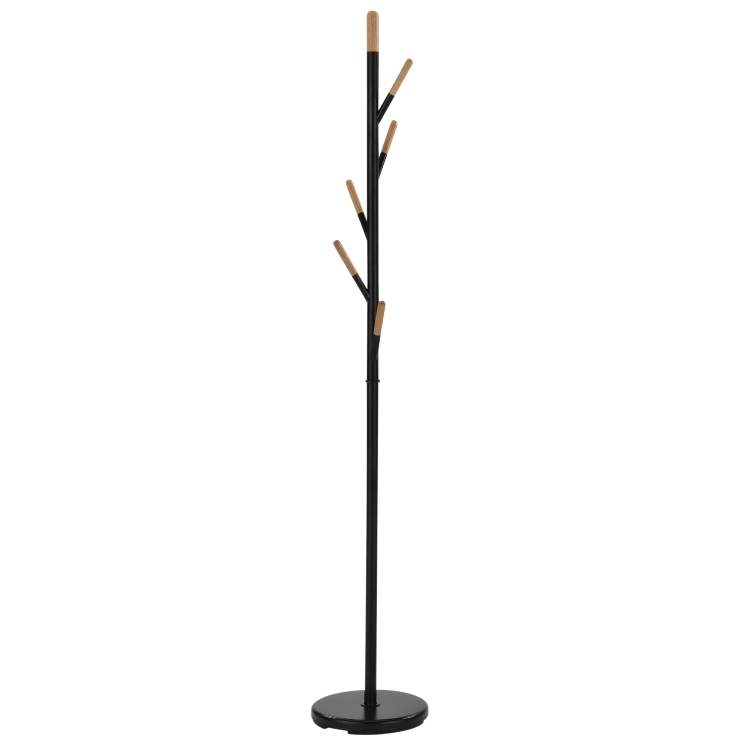 This fun, dipped-look coat rack is just what your house needs. Sturdy, metal construction and solid wood, natural-finished hooks make this a practical piece. Multiple hooks allow for plenty of hanging space – whether you use it for coats and hats by the front door, or for jewelry, scarves and other accessories in the bedroom.