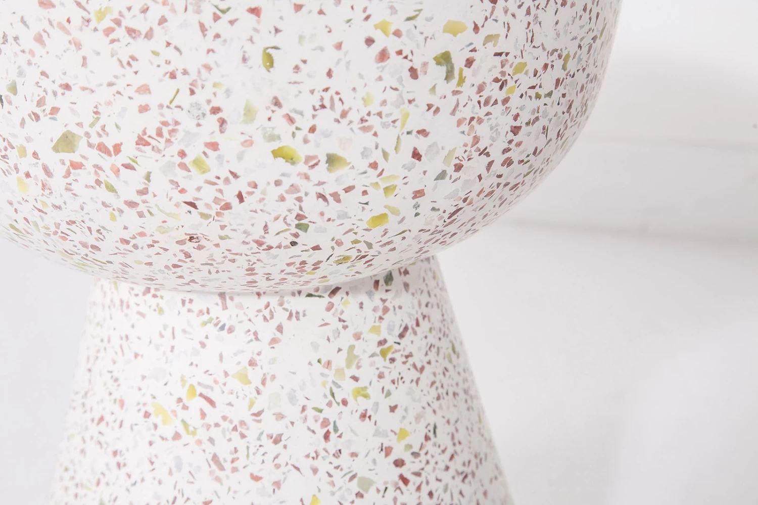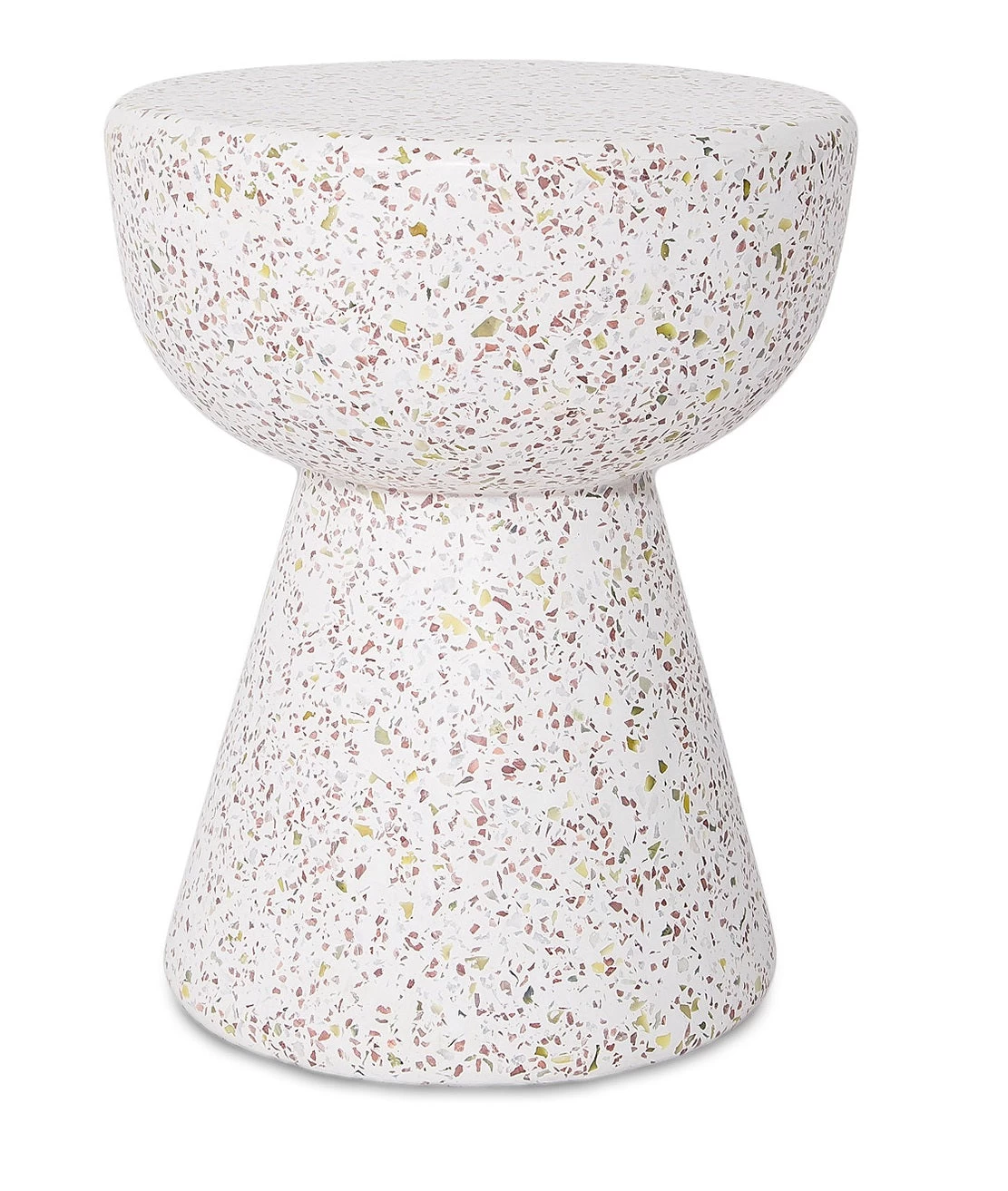 Our Terrazzo Concrete Stool, formed in white concrete and flecked with multi-coloured stone chips, is perfect as a stool, as extra settings or a super-stylish accent table indoors or out.