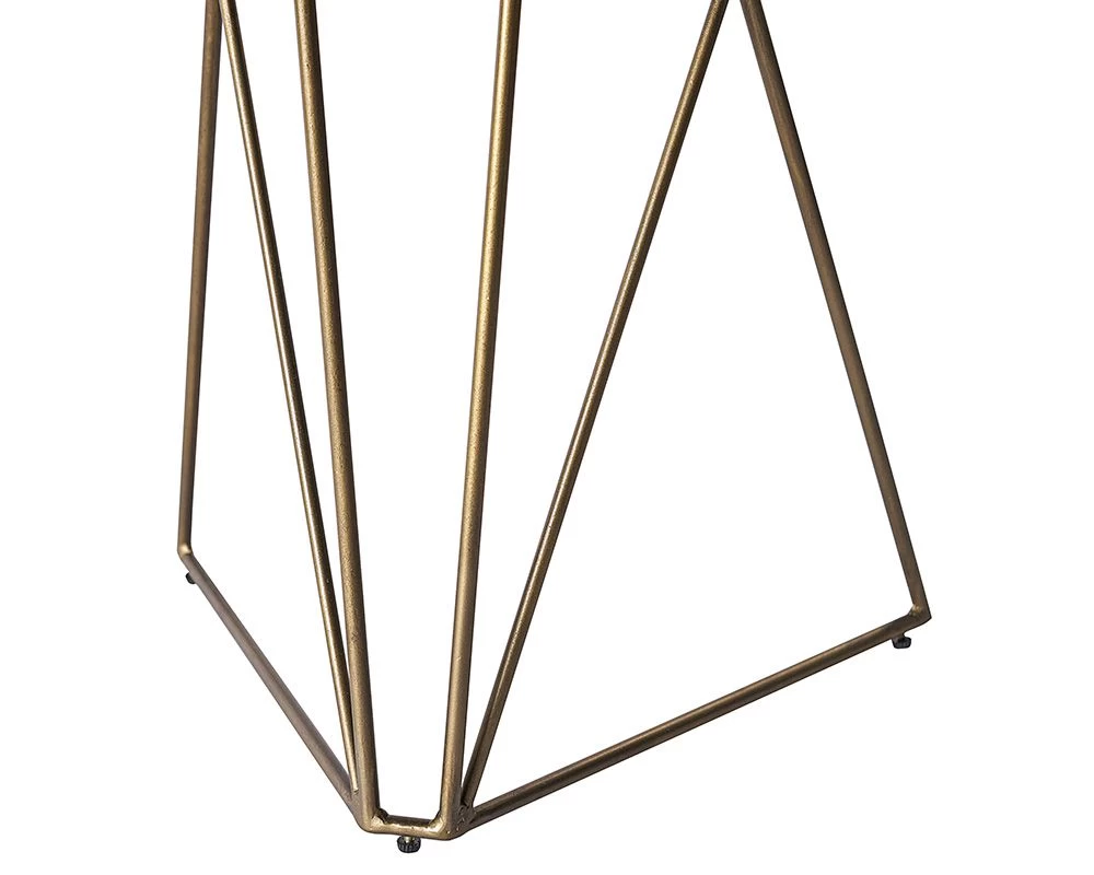 A showstopping desk featuring refined craftsmanship. Designed with a grey marble top and geometric iron legs with a brushed antique brass finish. Pair with coordinating dining, console, coffee and end tables.