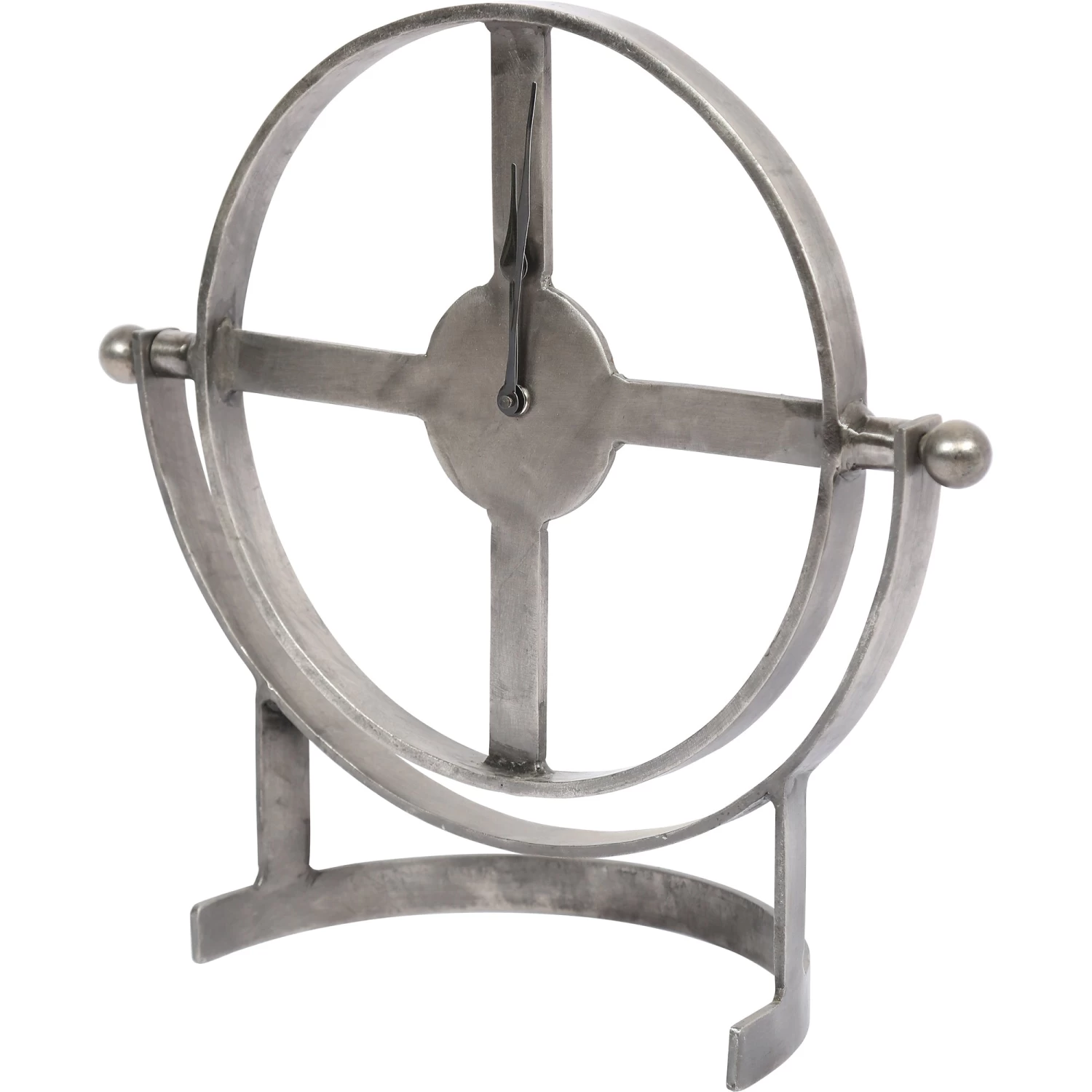 The Valer Wall Clock features an industrial style, composed of iron with a nickel plated finish.Â