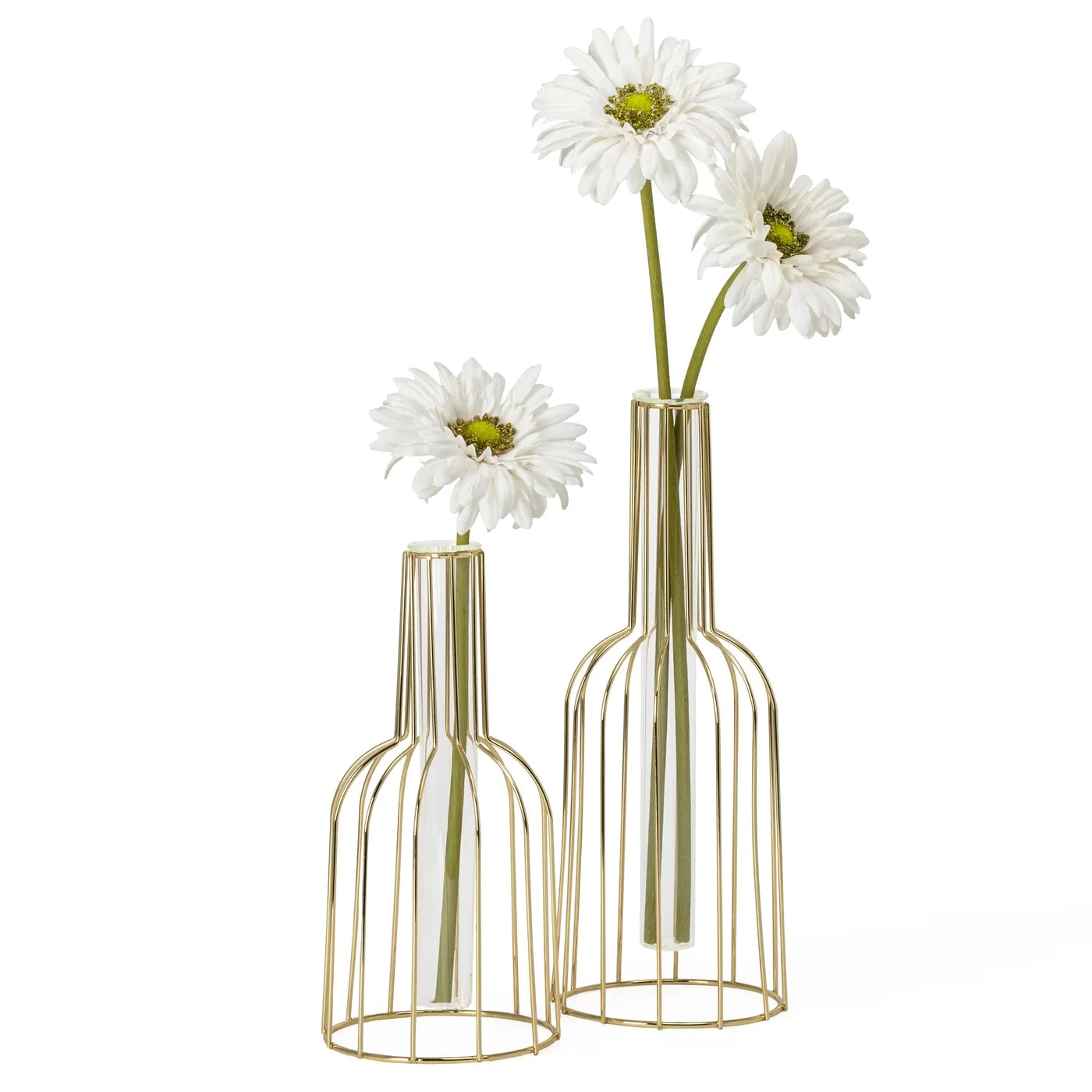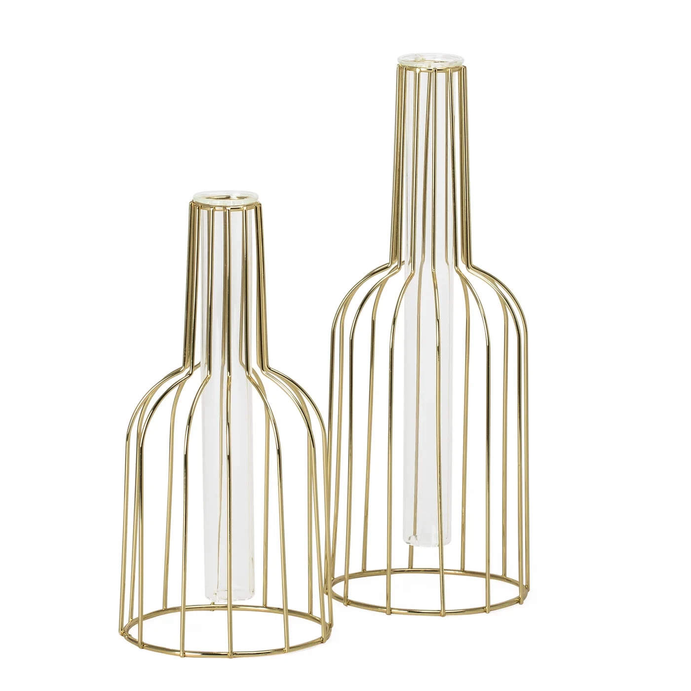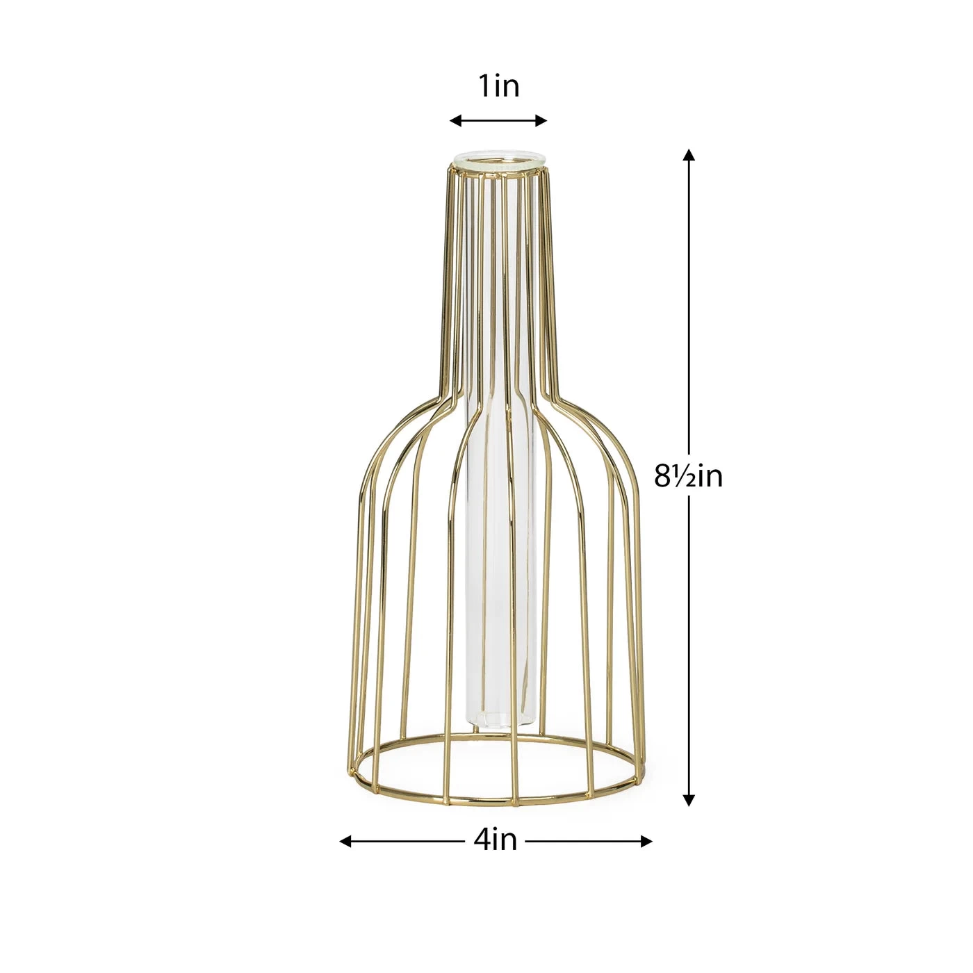 This elegant Wire Bottle Shape 8.5h” Pendant Hanging Tube Vase is the perfect way to add modern luxury to any space. The contemporary vase features an eye-catching wire design, suspending a glass tube in a striking silhouette. Filled with a fresh or faux stem, it creates a stylish statement piece, perfect for elevating any décor.