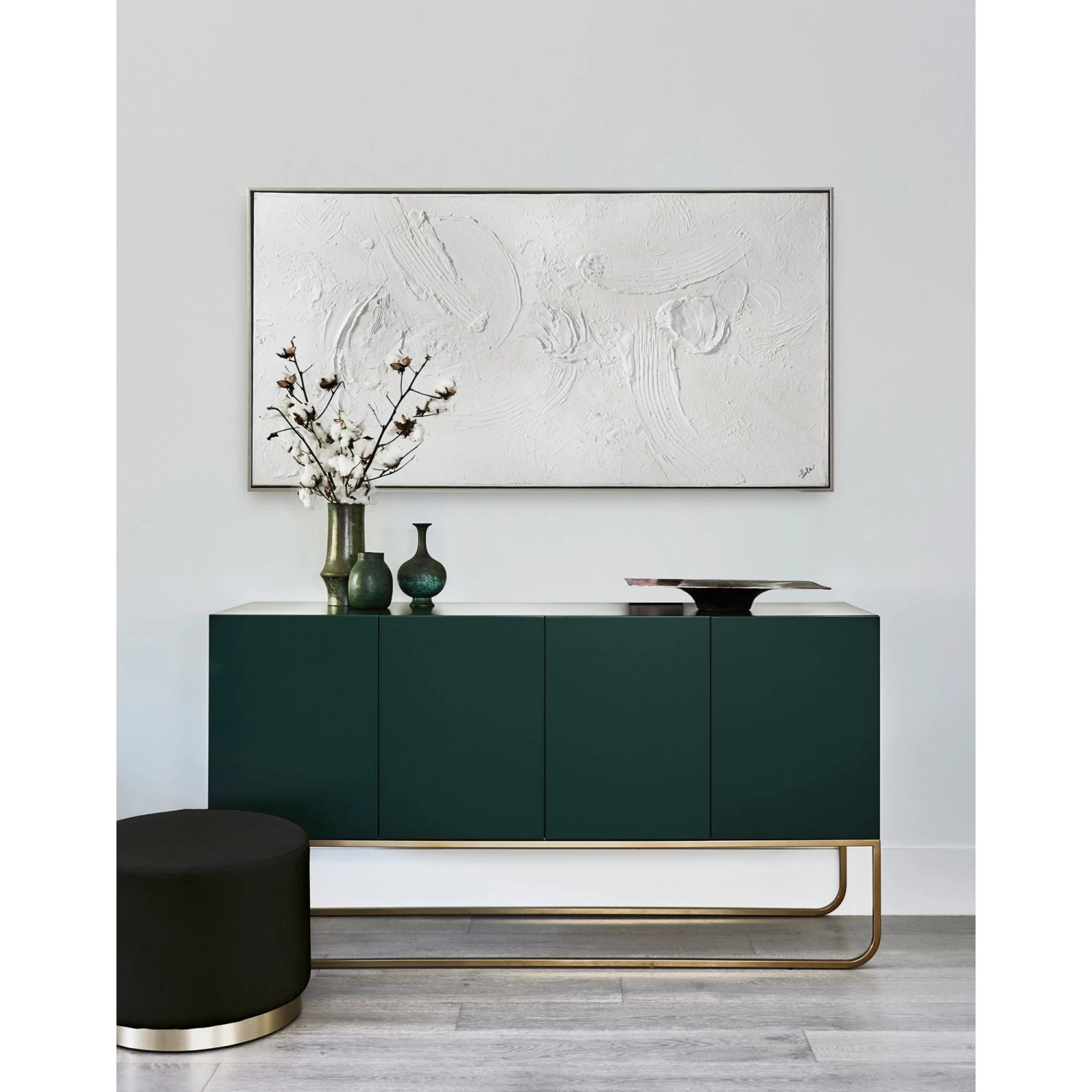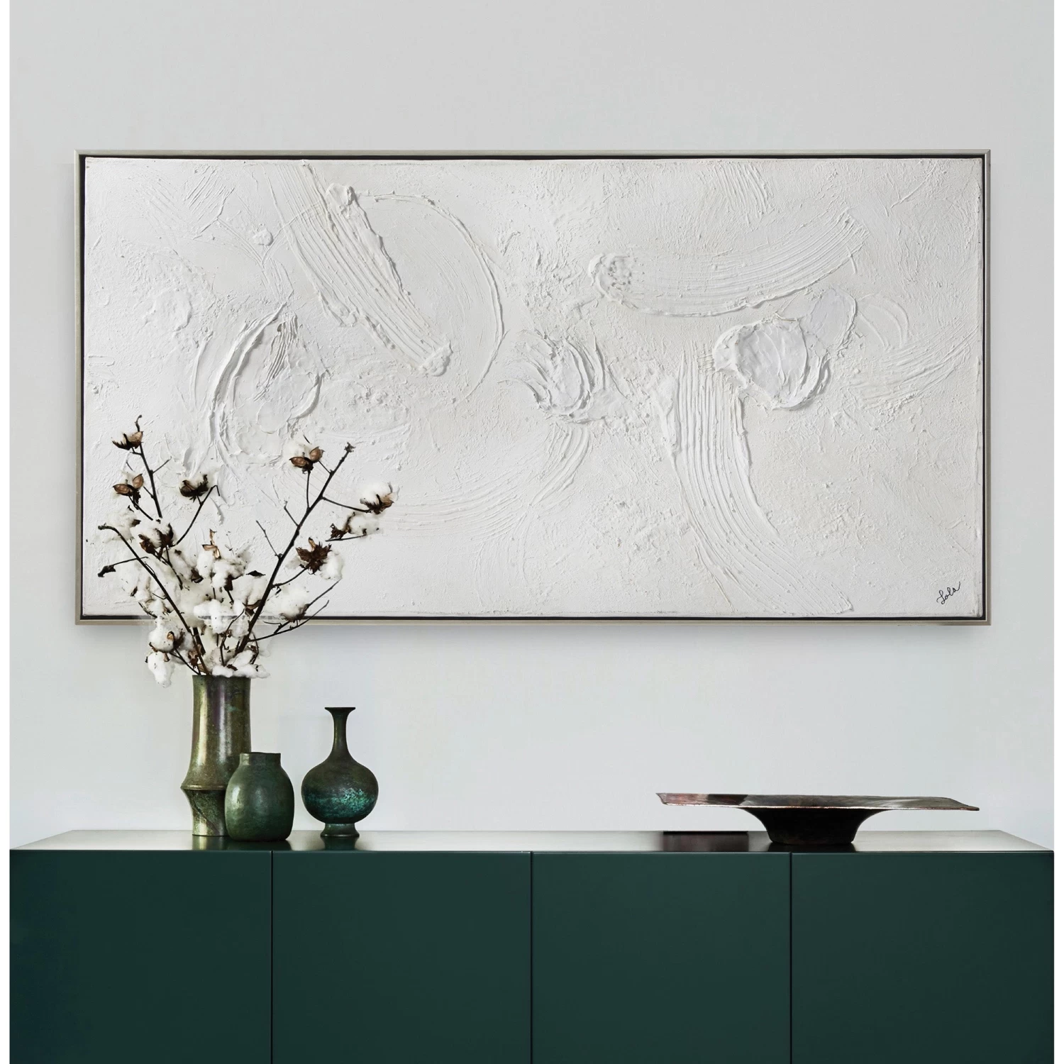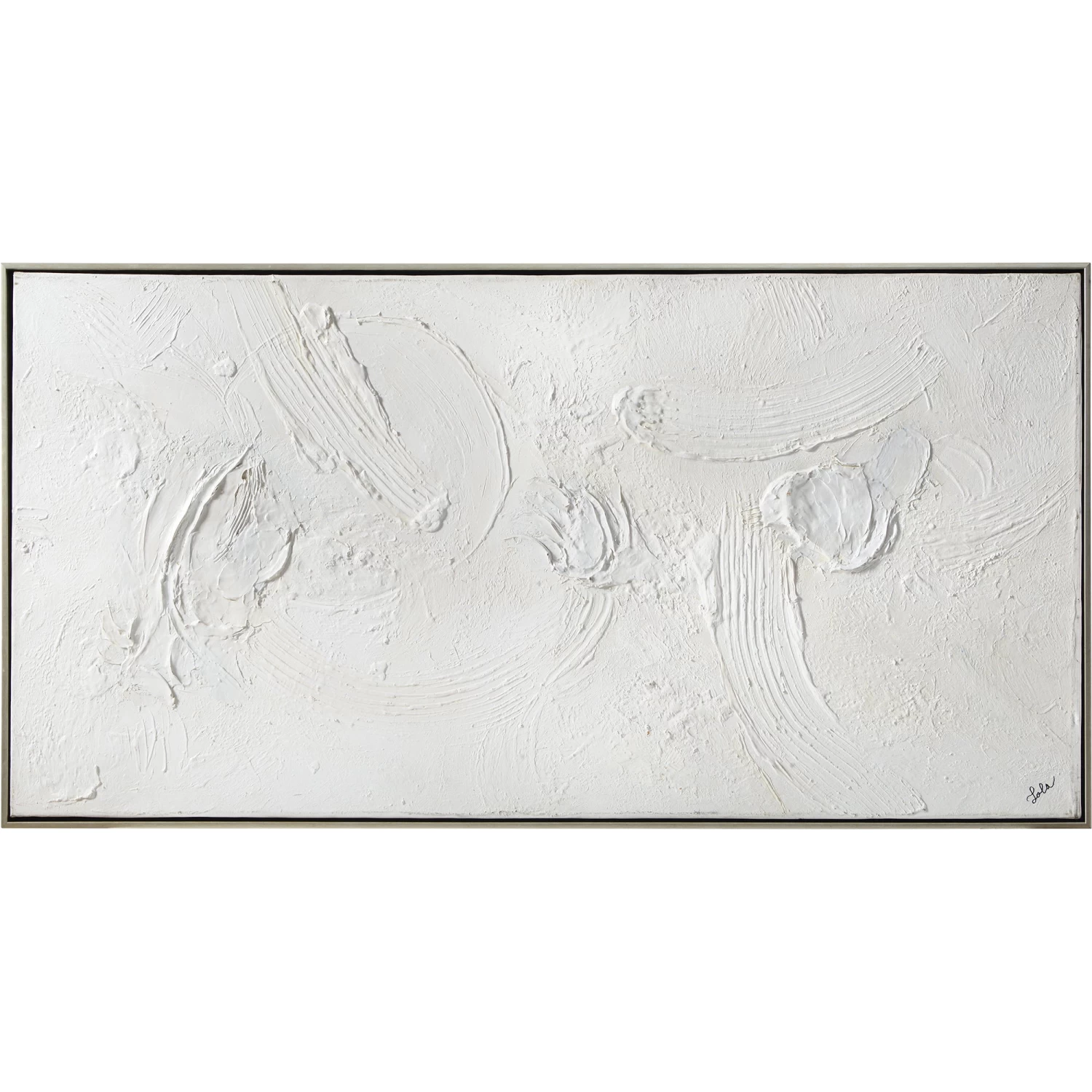 The Yanno Canvas Painting features a contemporary, hand painted design with a silver floating frame.Â